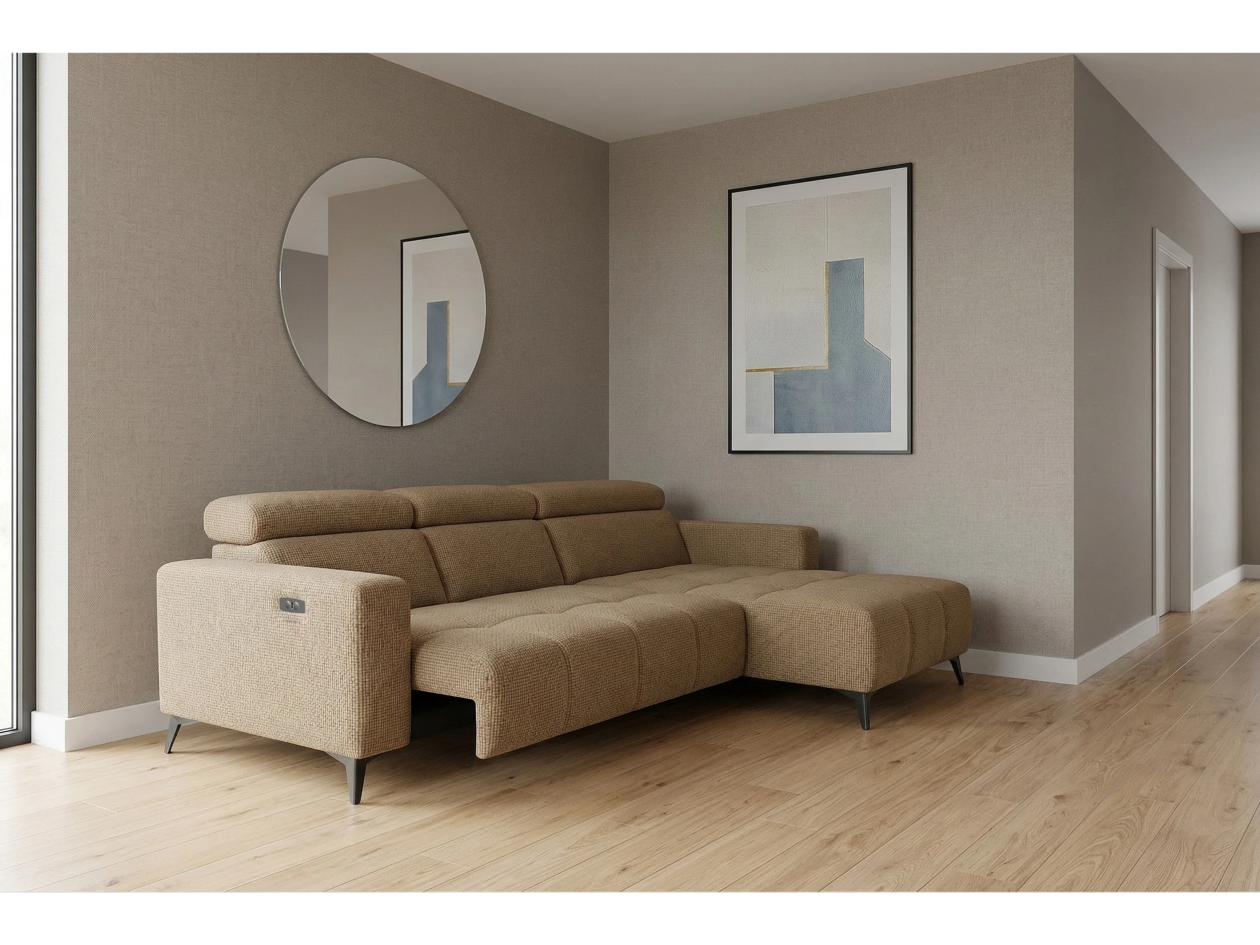Nicolette – Moderne hoekbank met elektrische relaxfunctie