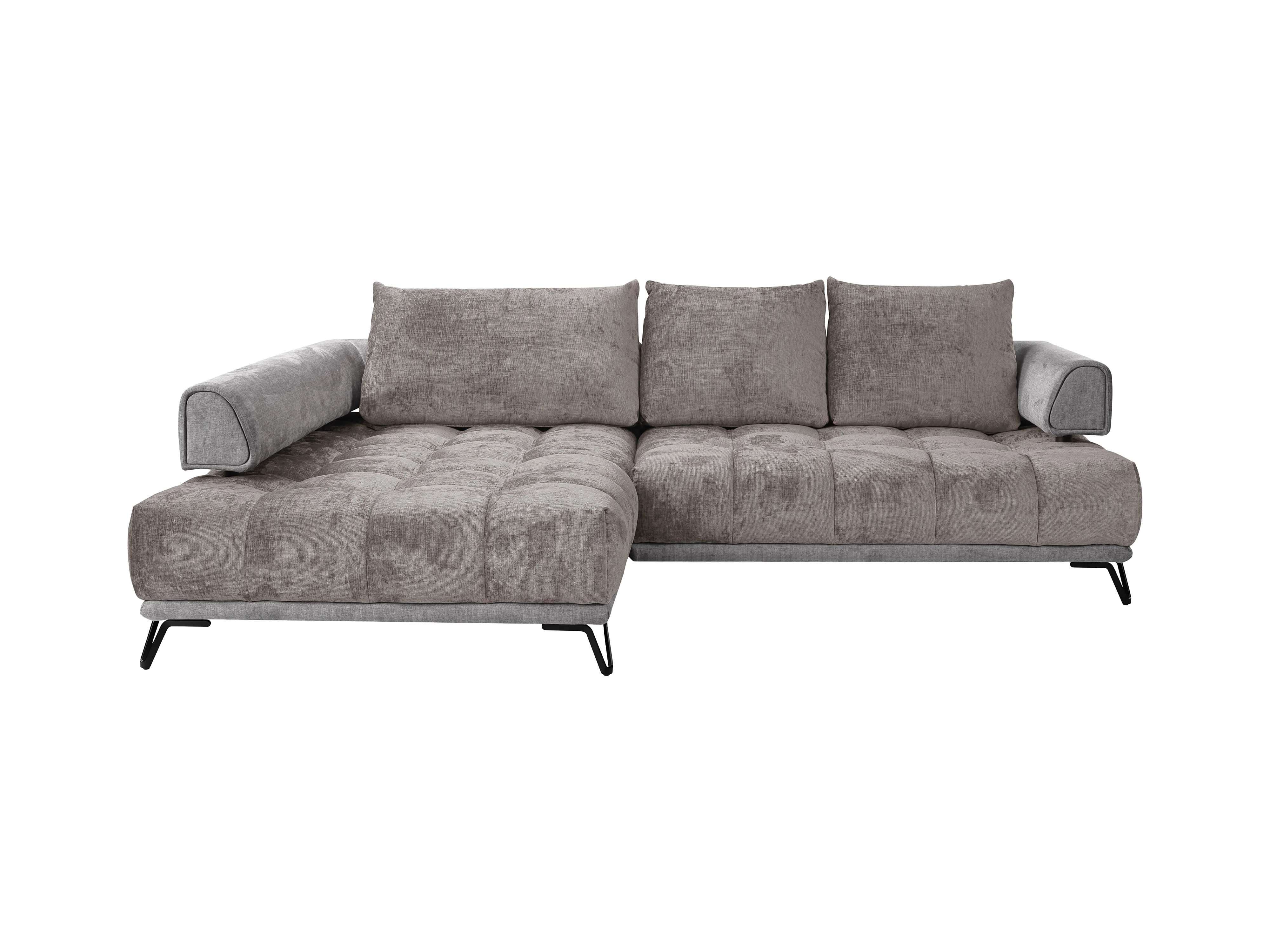 Hoekbank met hoek links van grijze stof en velours NIVORIA