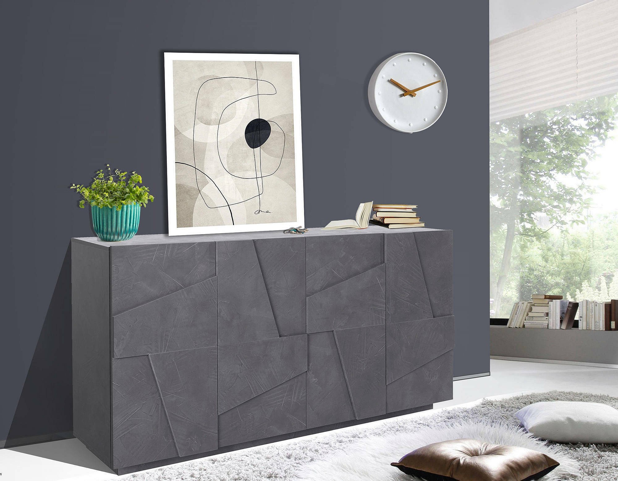 Noel dressoir, 4-deurs keukendressoir, Woonkamerbuffet, 100% Made in Italy, 162x44h86 cm, Leisteen