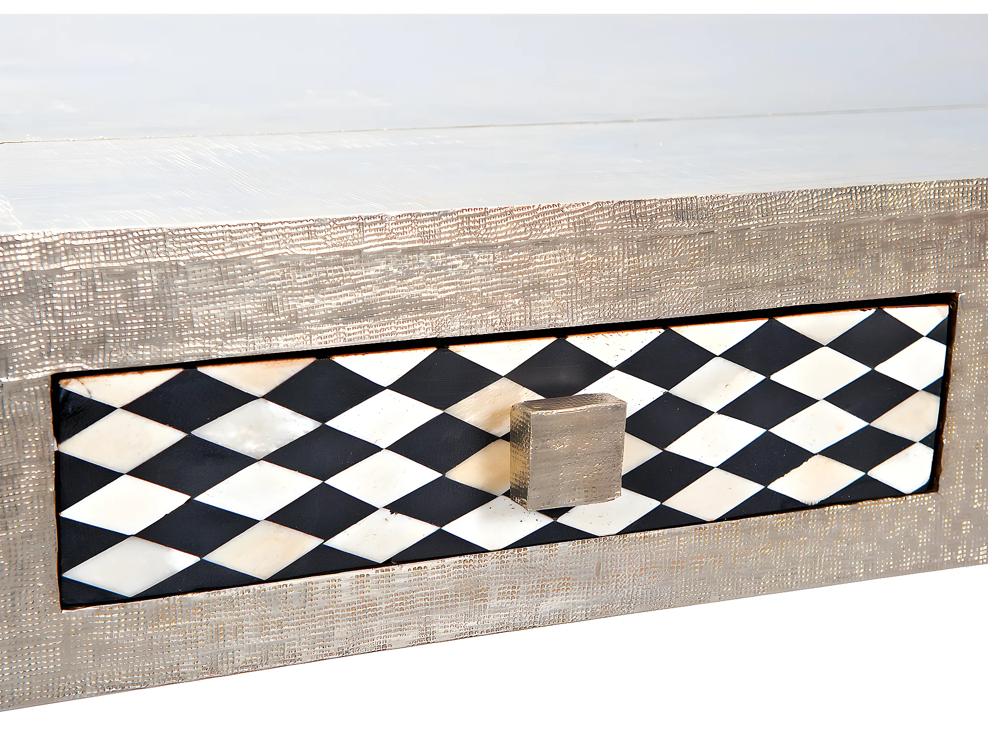 Nopar salontafel 2 lades zilverkleurig, zwart, wit, bruin.