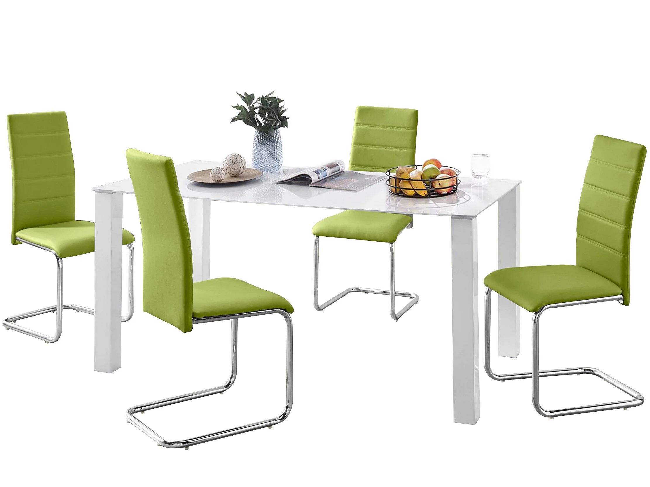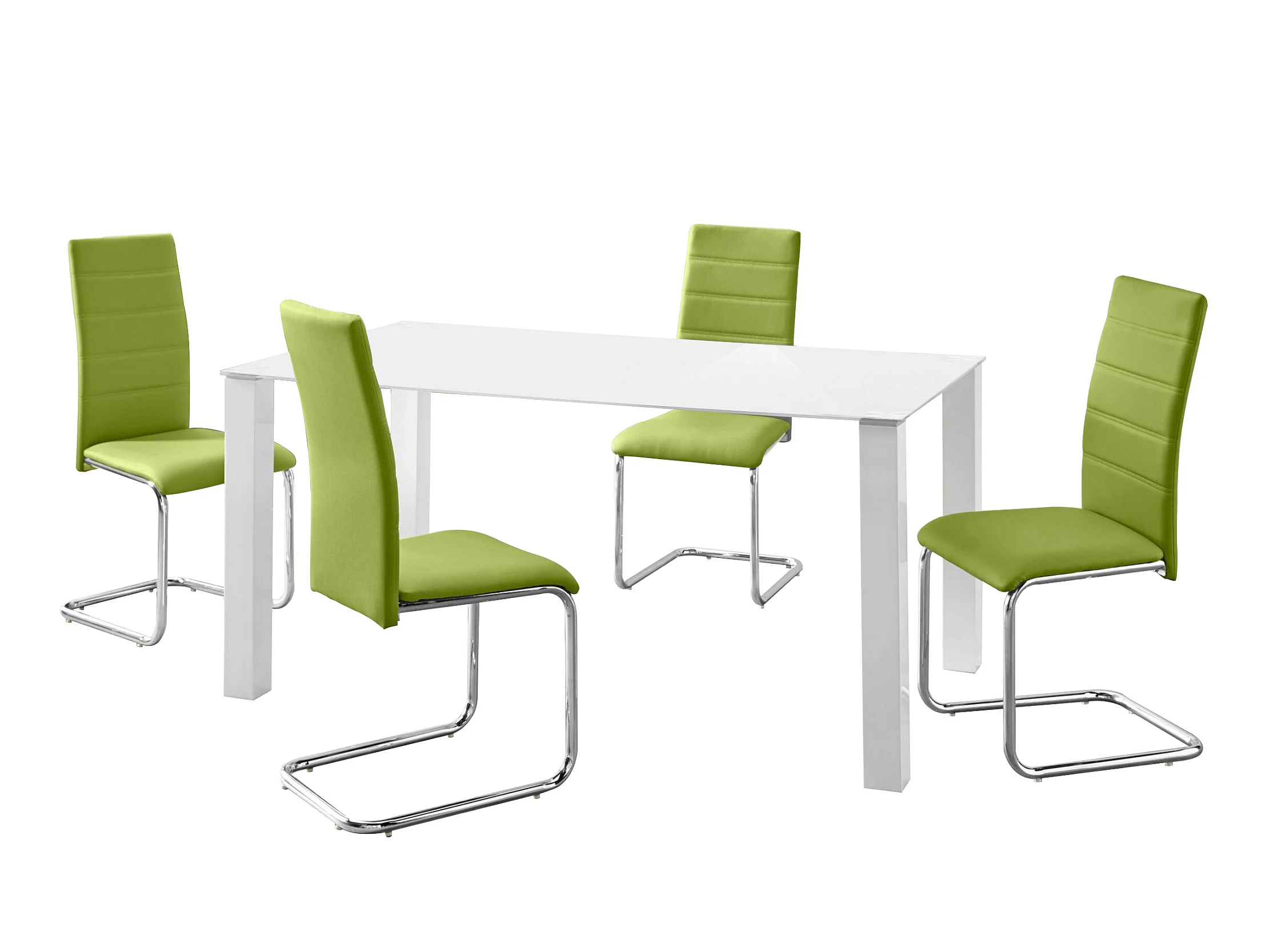Eettafelset 117 x 68 cm met 4 fluwelen stoelen - gouden metalen poten - Wit + groen