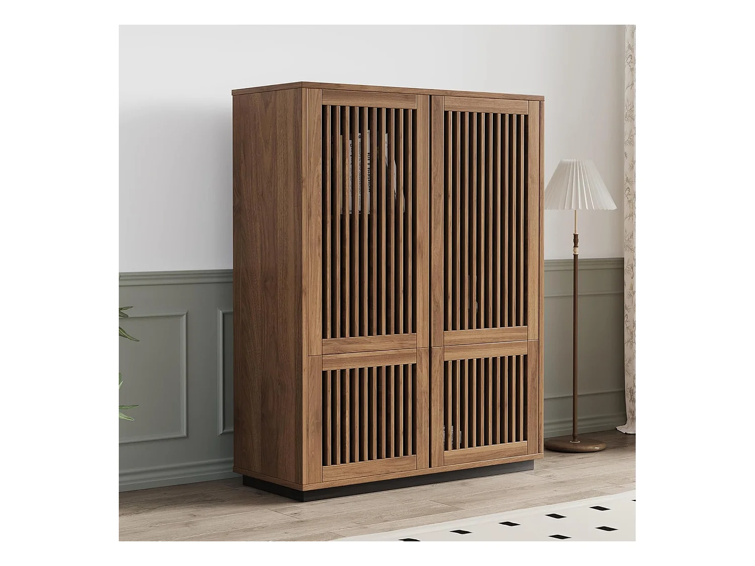 Noten Kast 120cm 4 Deuren - Multifunctioneel Wonen/Slapen - Landstijl - Boekenkast/Opbergmeubel