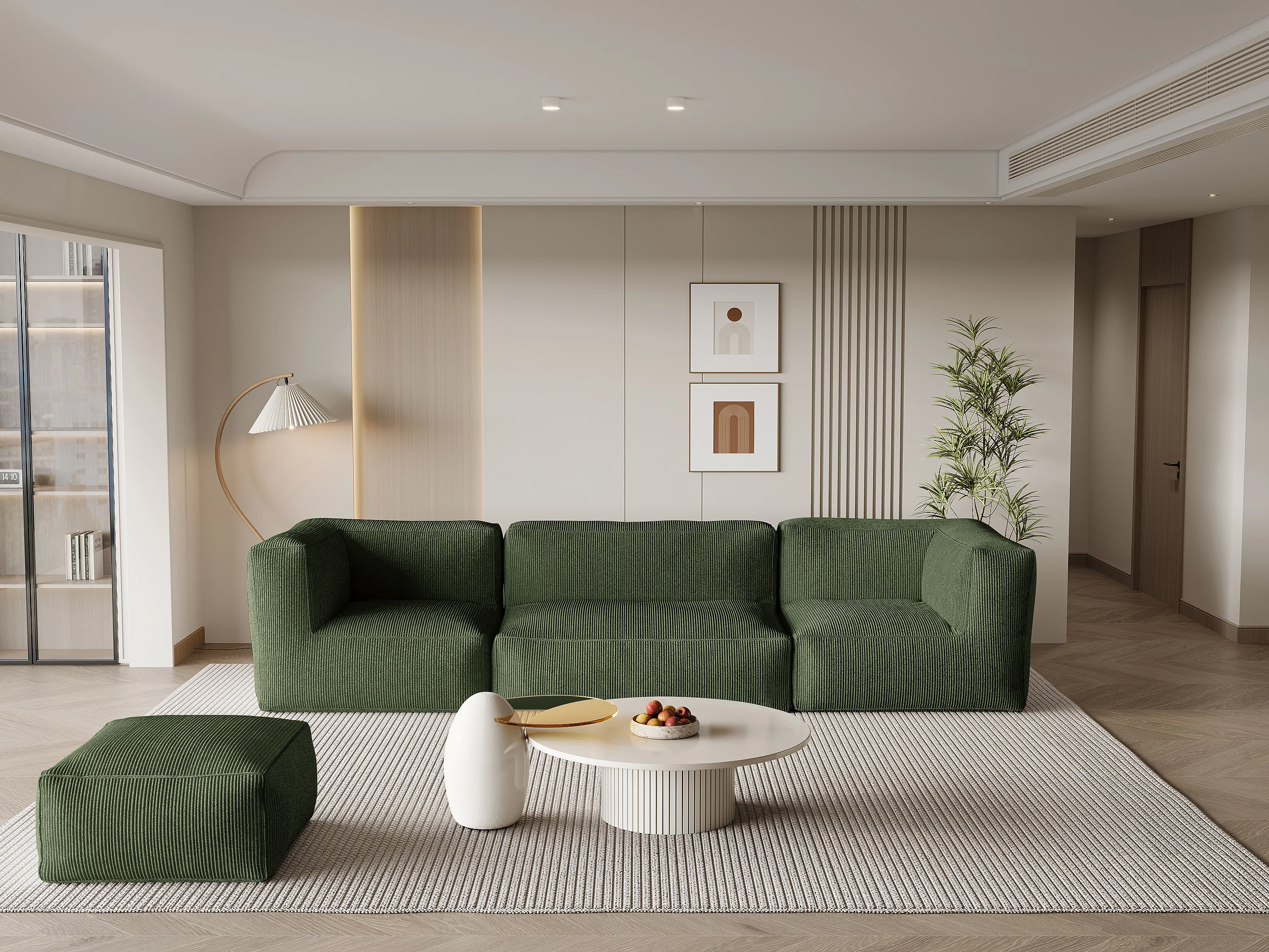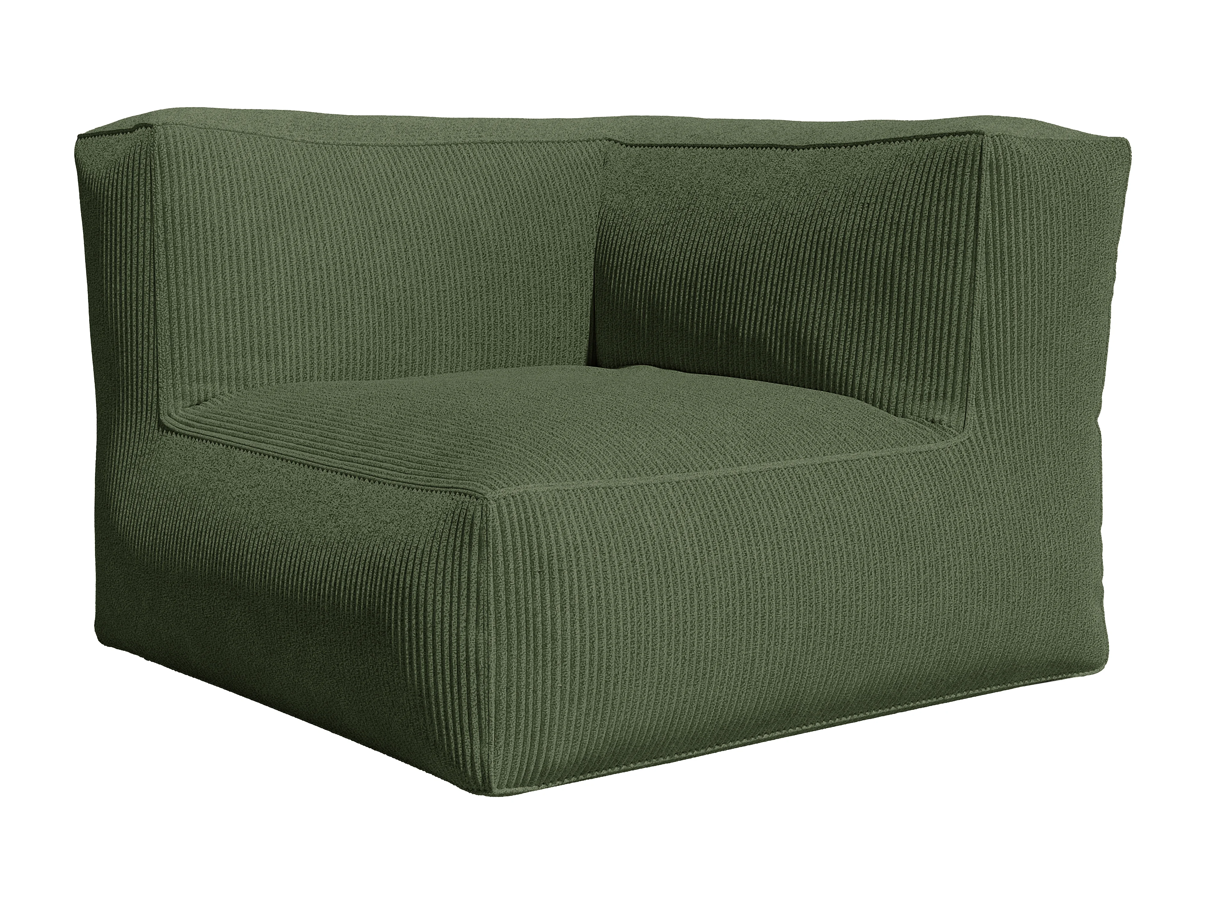 Moduleerbare zitbank met fauteuil met poef van groen ribfluweel NOUMARA
