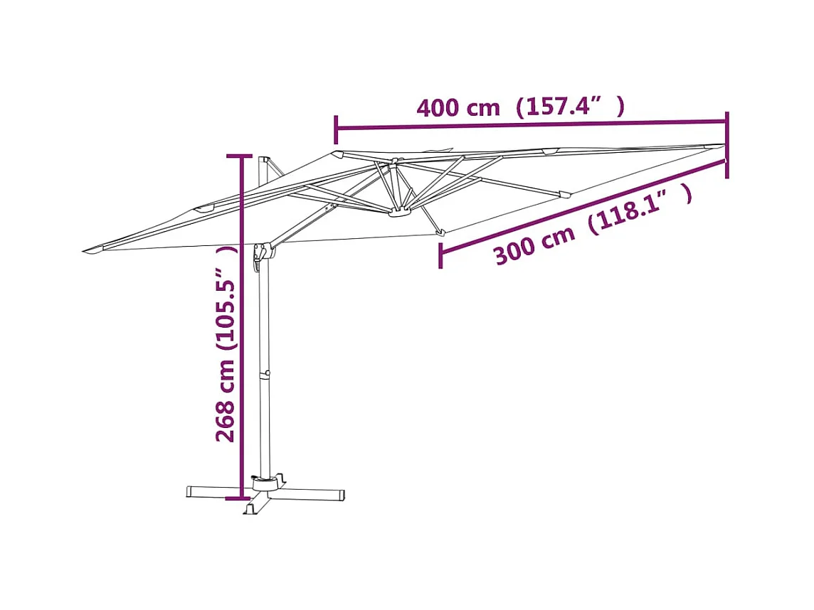 Offsetparasol met aluminium paal Bordeaux 400x300 cm