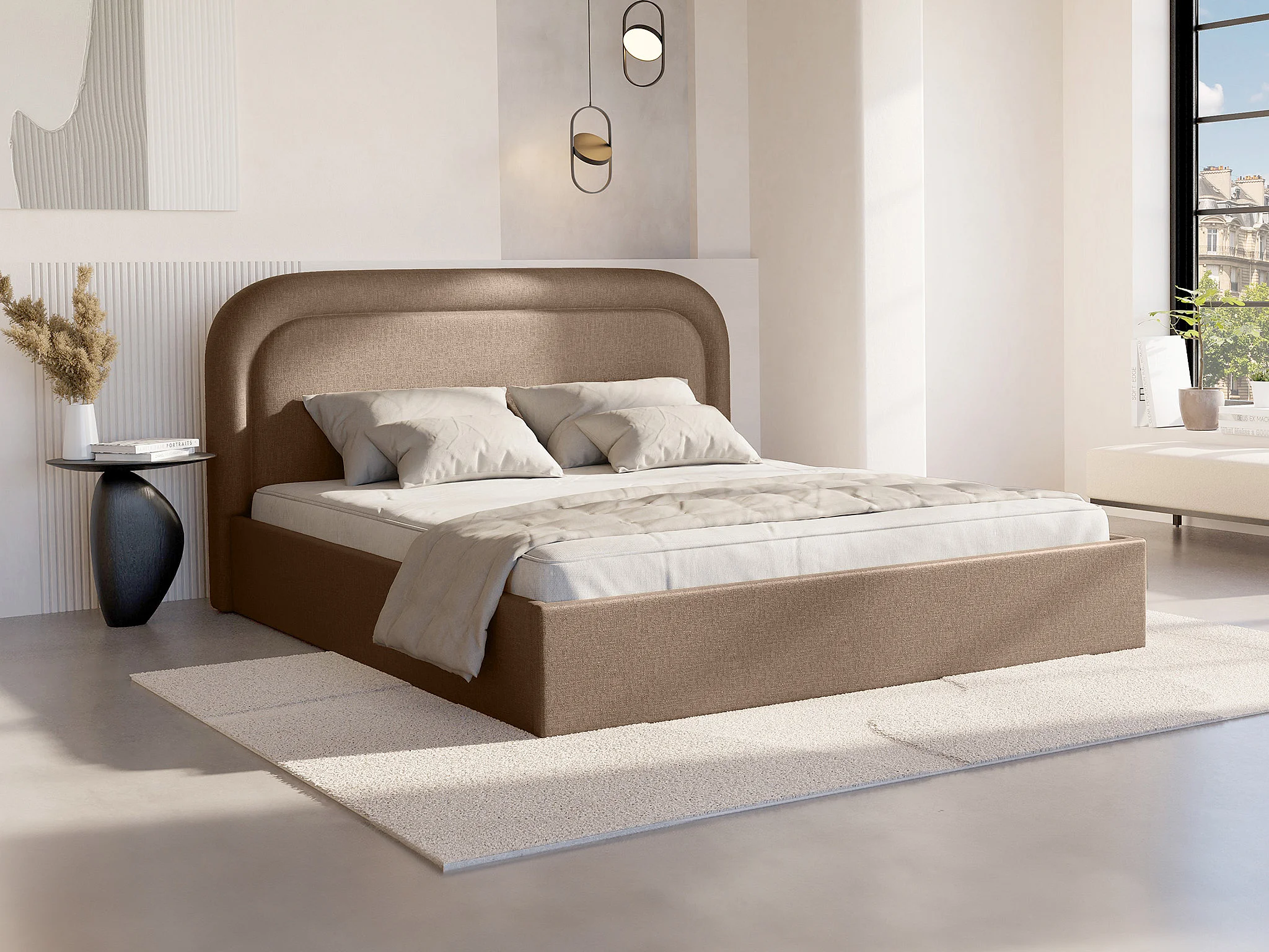 Bed met opbergruimte 180 x 200 cm - Gevlamde stof - Taupegrijs - FIREZA