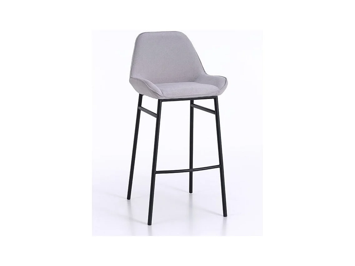 Omery lichtgrijze stoffen barkruk en zwart metalen poten - Set van 2