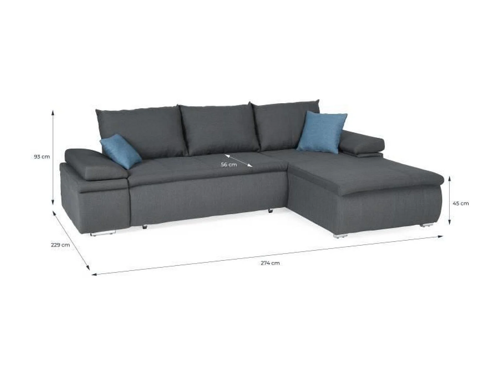 Omkeerbare 3-zits slaapbank + opbergvak - Grijze stof - 274 x 184 cm