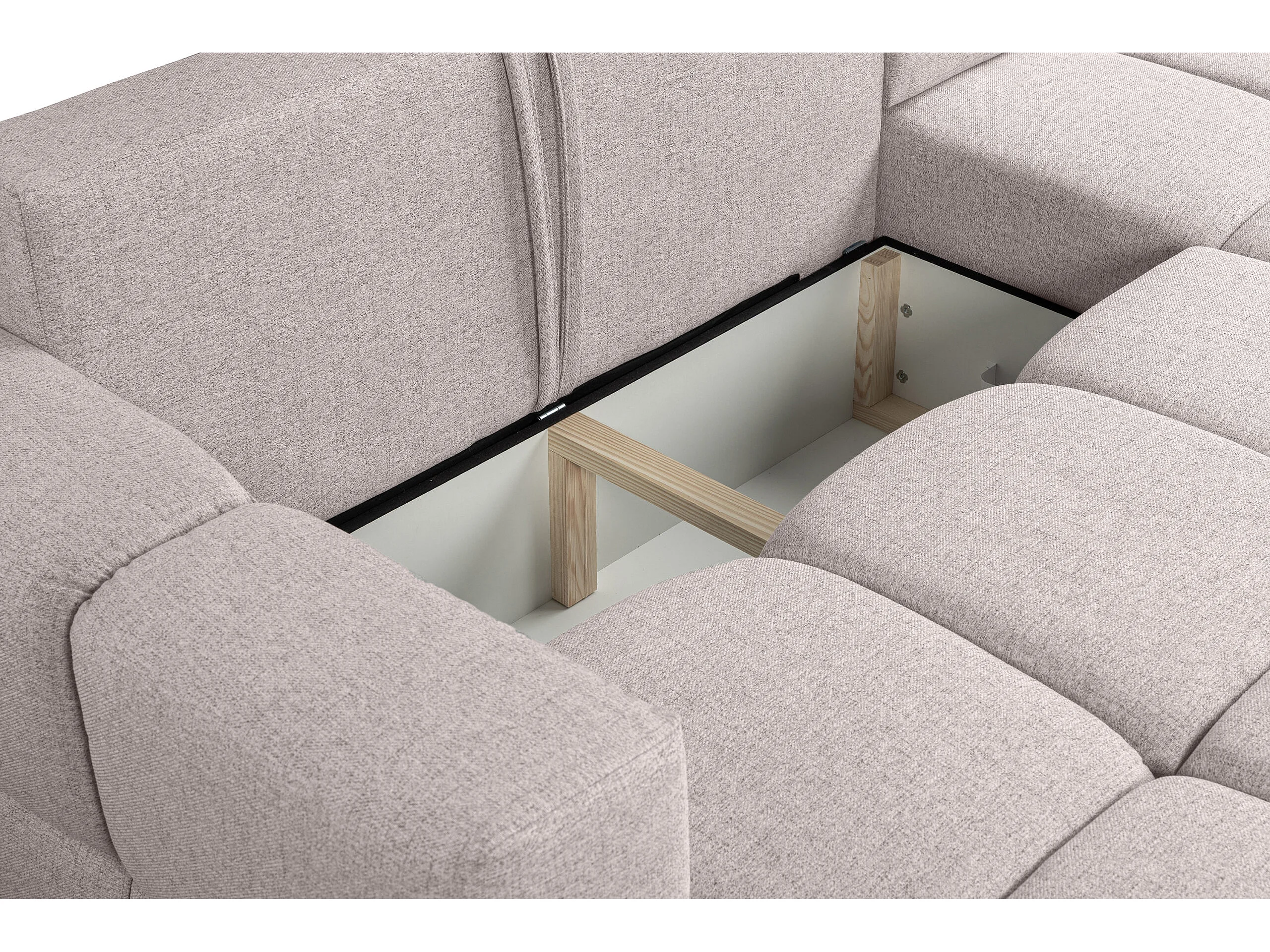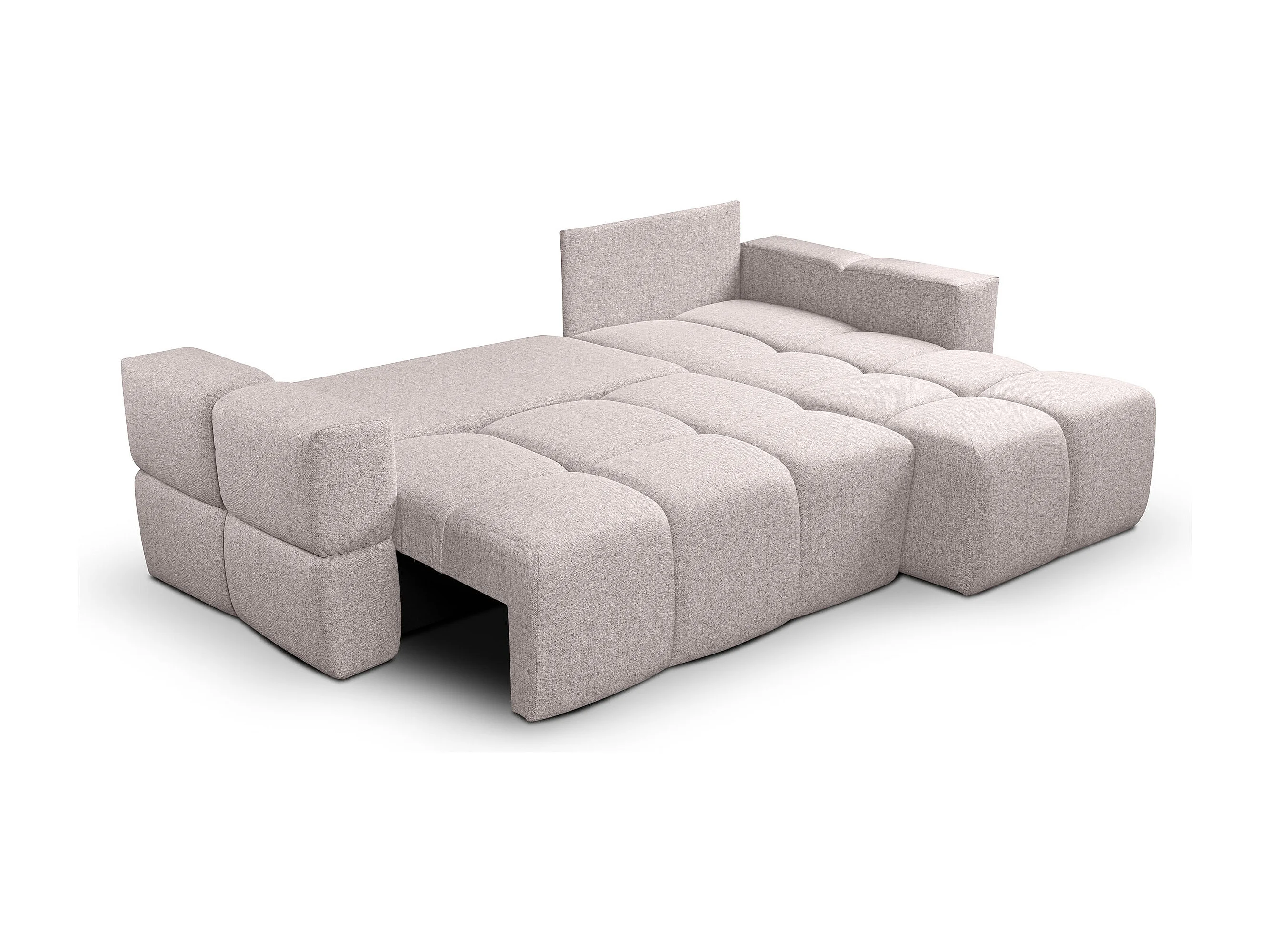 Omkeerbare hoekbank met slaapfunctie, in beige stof FUMO van de fabrikant.