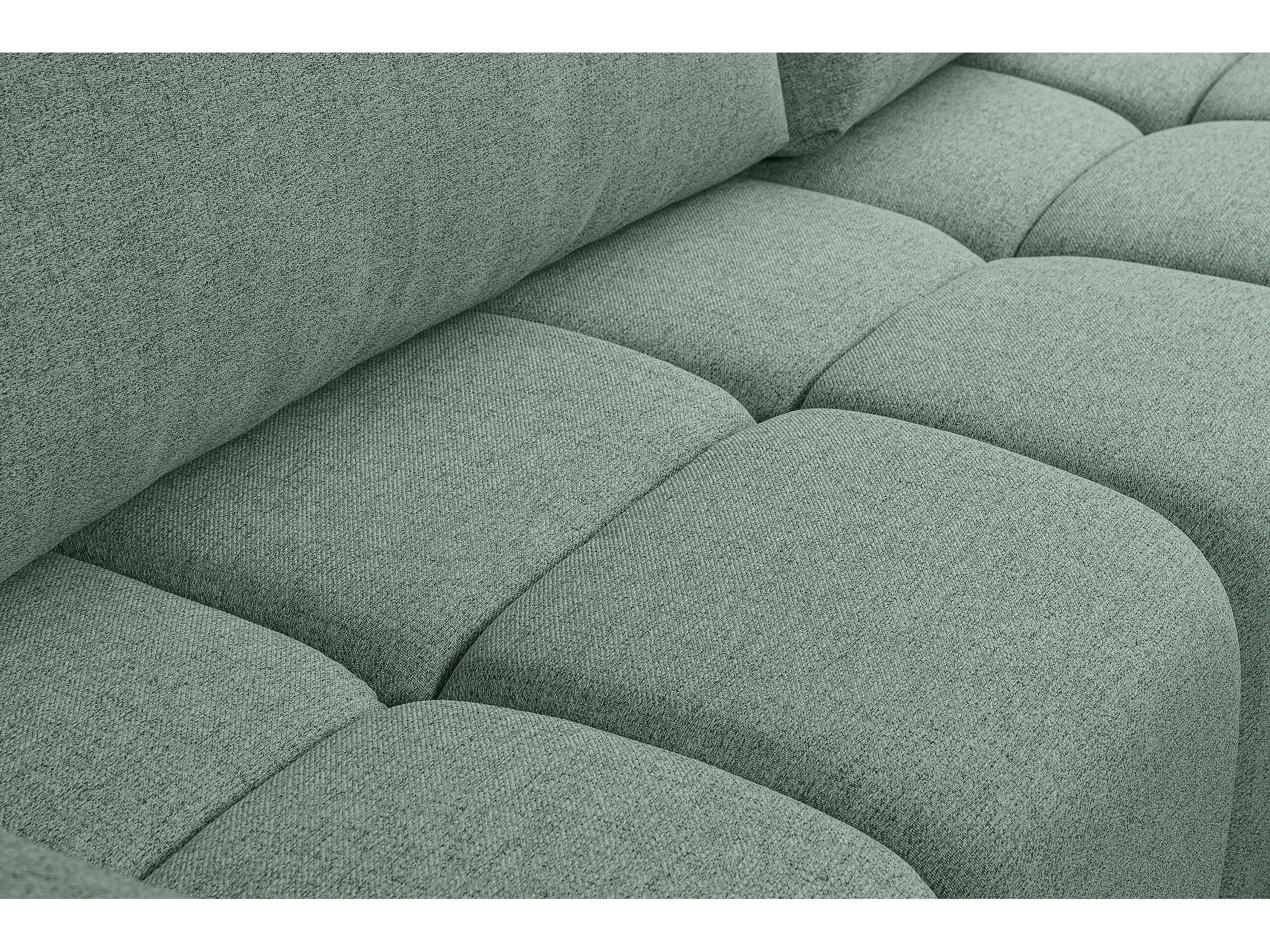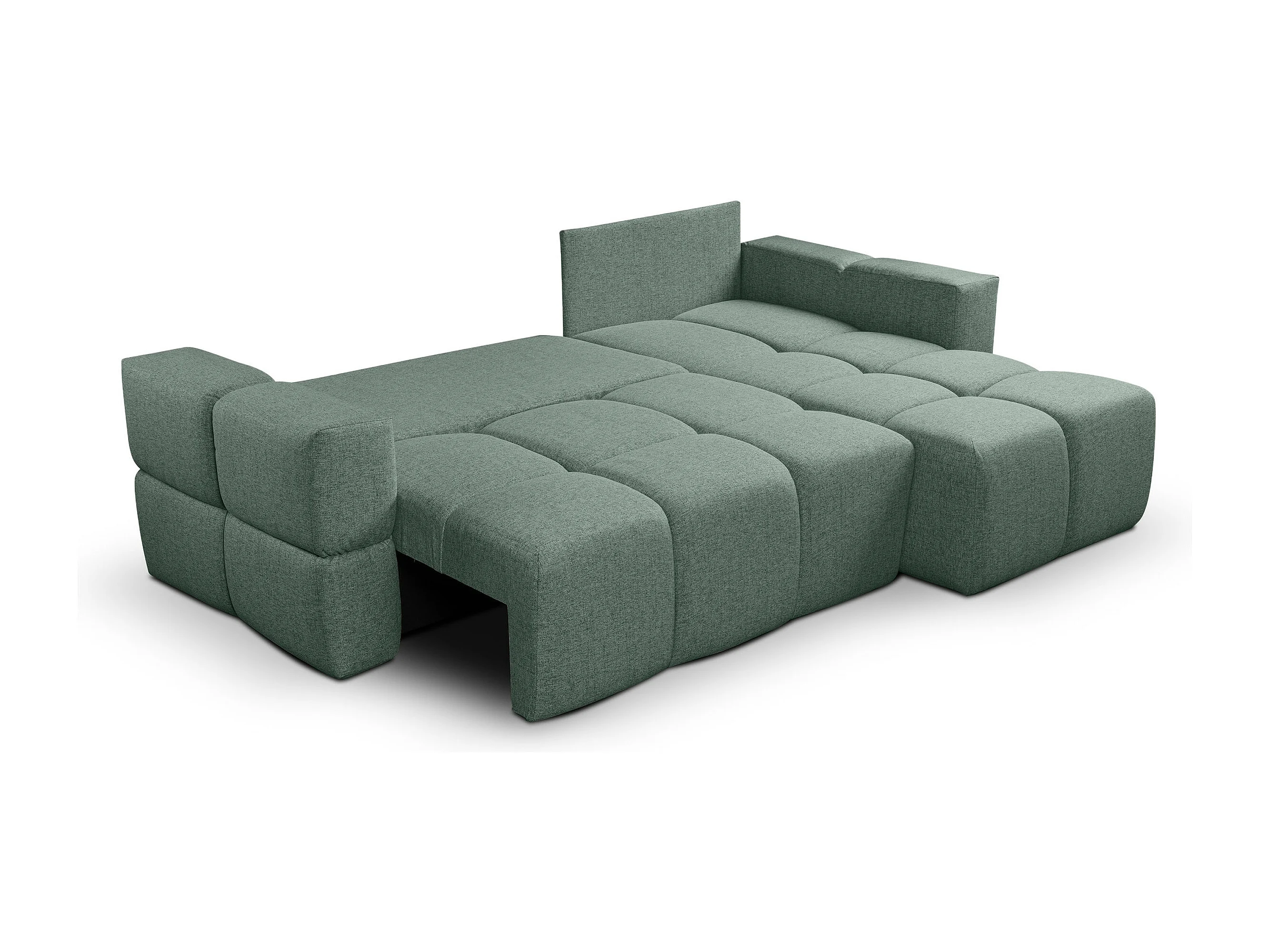 Omkeerbare hoekbank met slaapfunctie, in groente stof FUMO van de fabrikant.