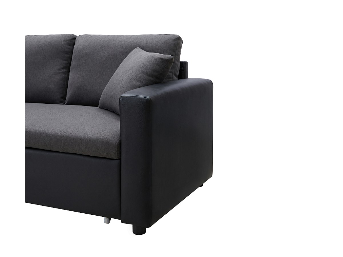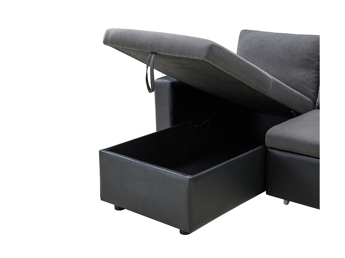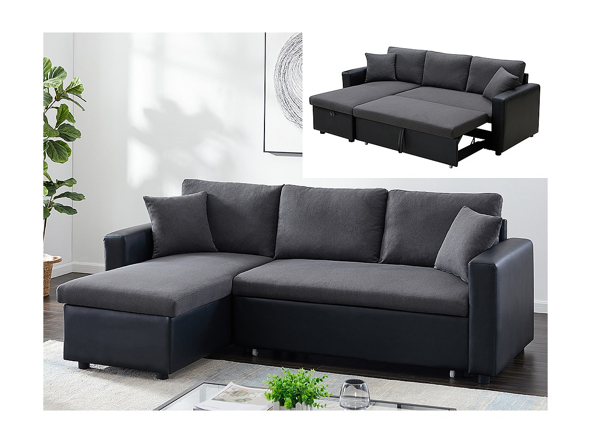 Omkeerbare hoekbedbank van stof en kunstleer GAZUR - Antraciet en zwart