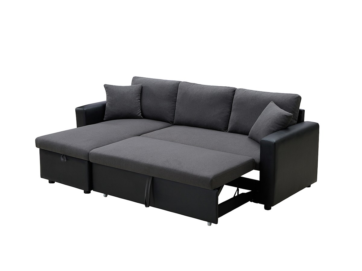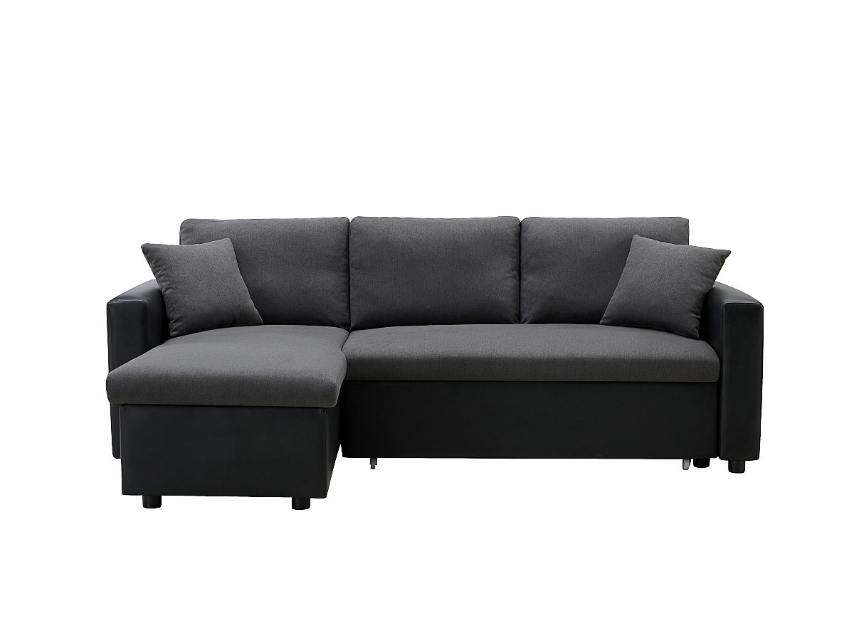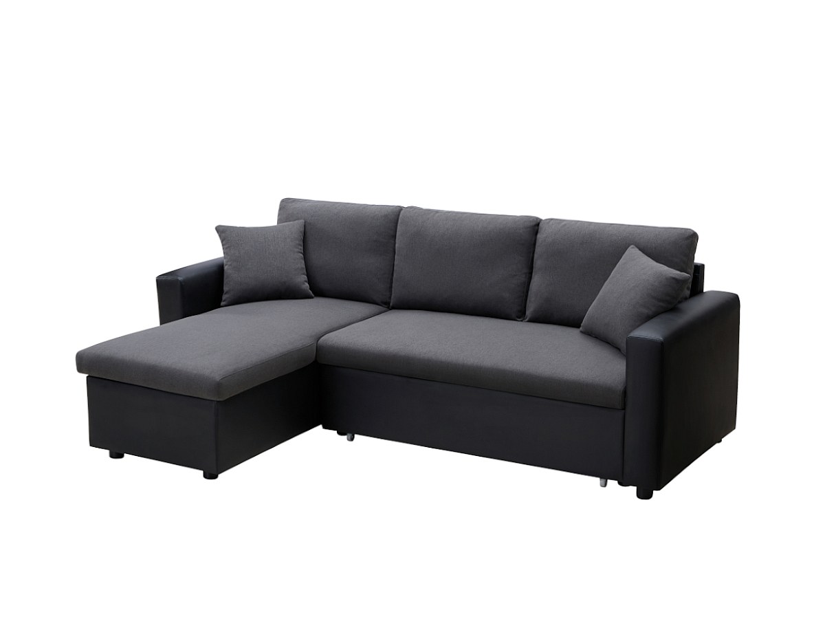 Omkeerbare hoekbedbank van stof en kunstleer GAZUR - Antraciet en zwart