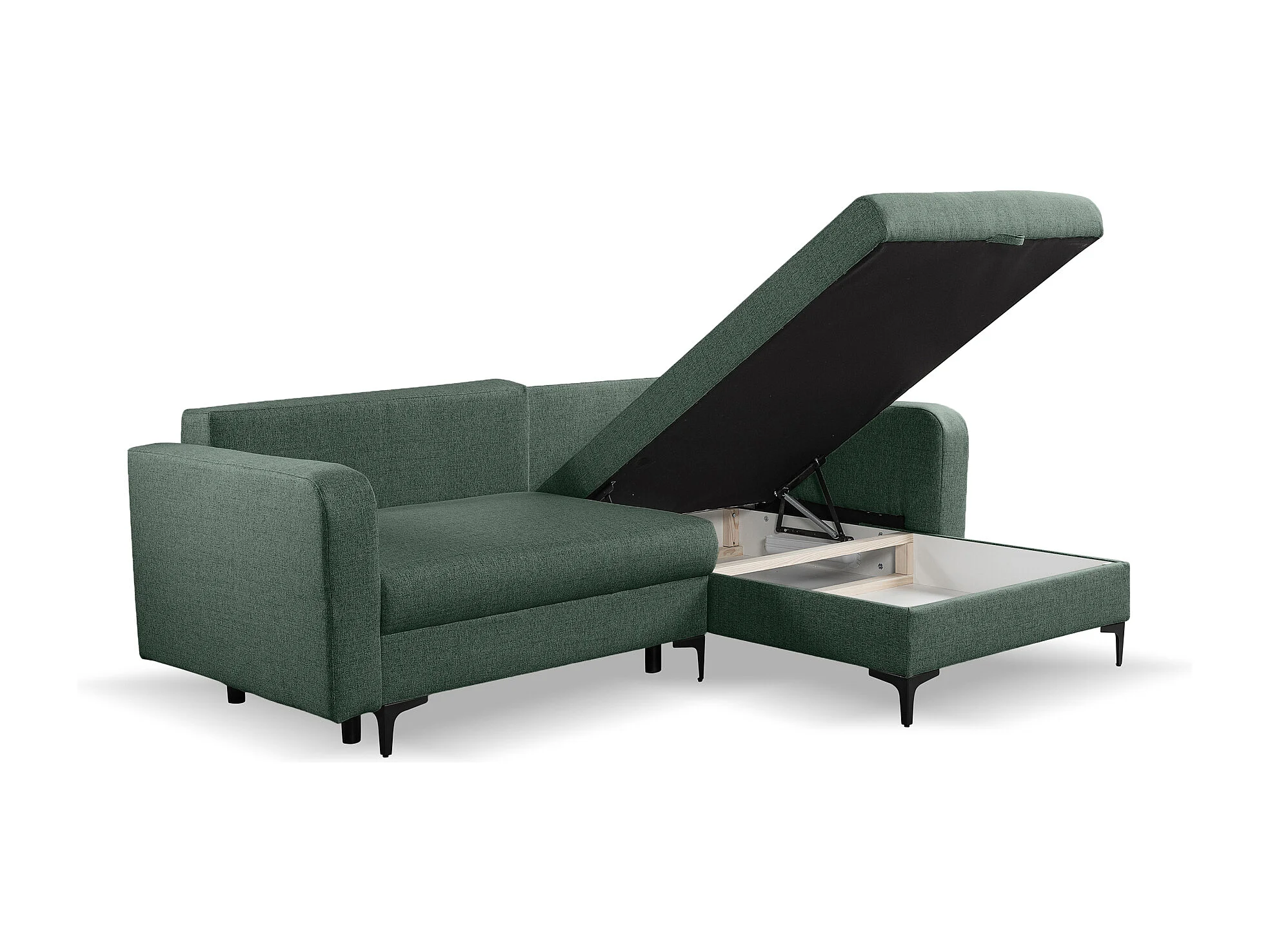 Omkeerbare hoekslaapbank COMO met slaapfunctie en opbergbox in fles groen – Rechtstreeks van de fabrikant, levering en plaatsing gratis!