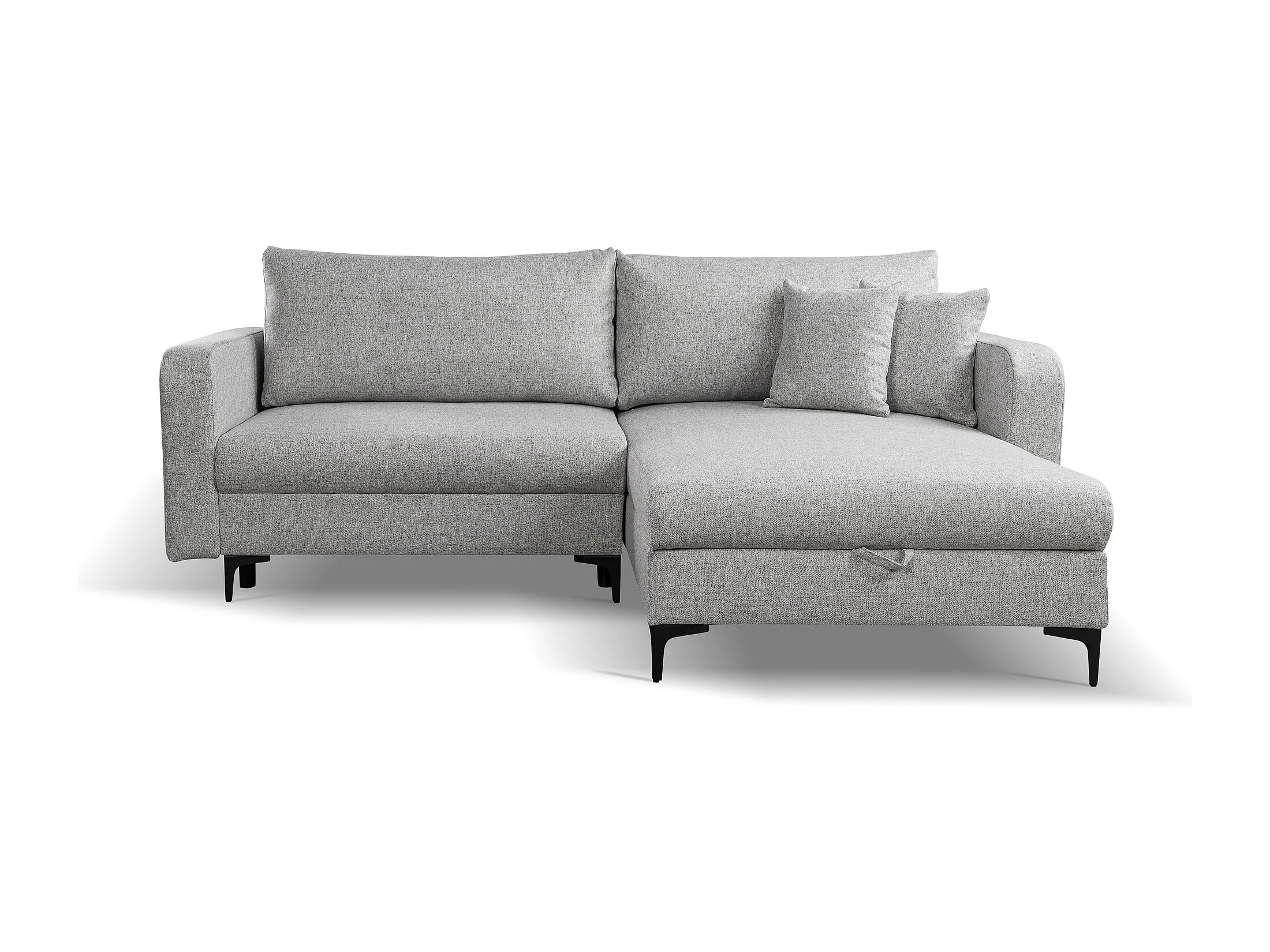 Omkeerbare hoekslaapbank COMO met slaapfunctie en opbergbox in grijs – Rechtstreeks van de fabrikant, levering en plaatsing gratis!
