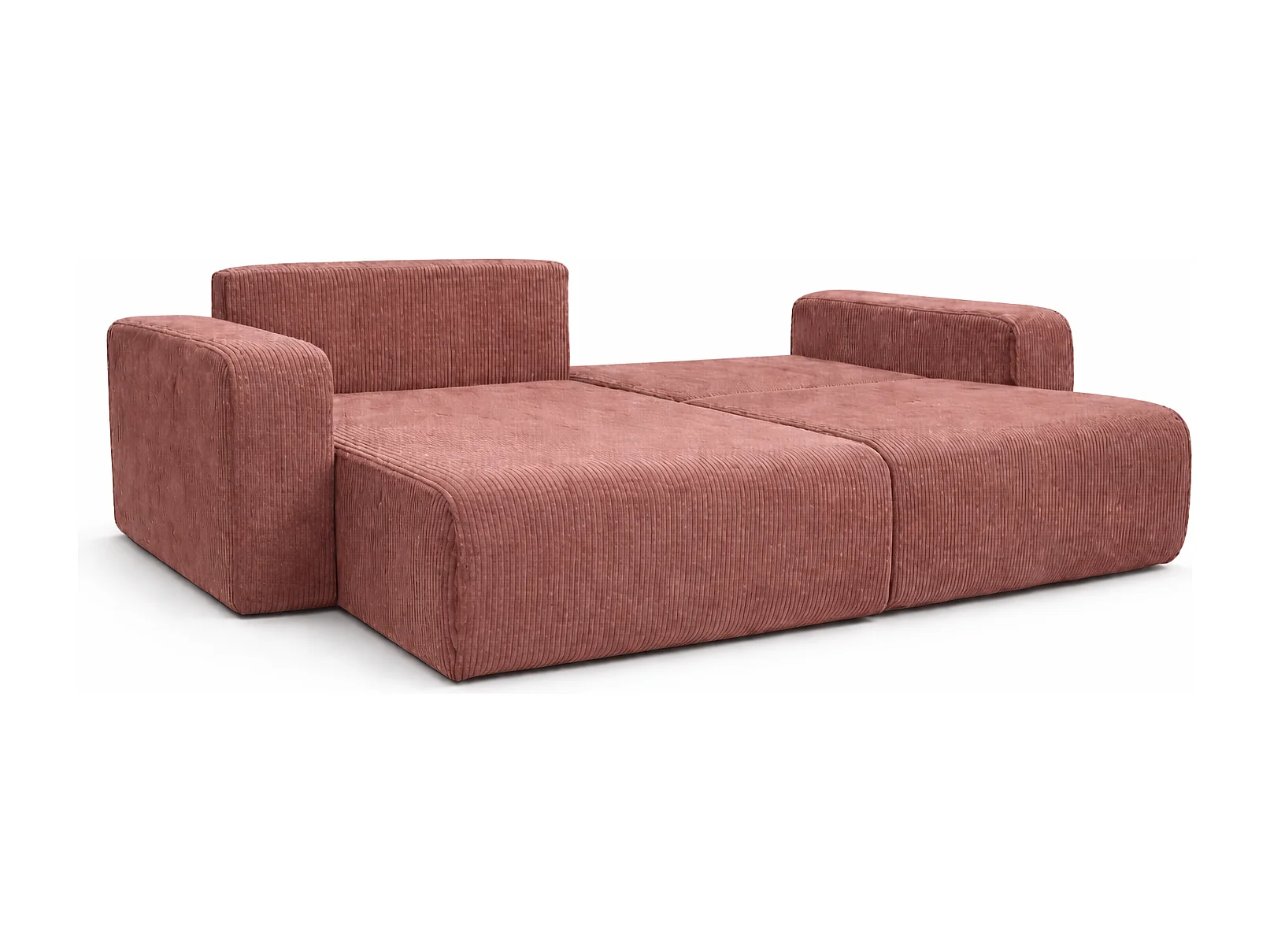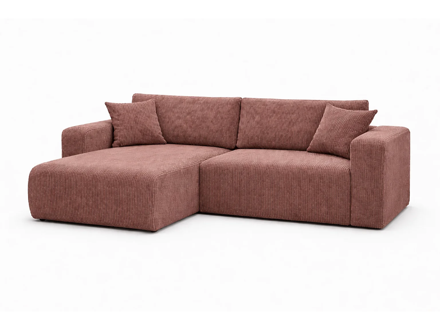 Omkeerbare hoekslaapbank Flora L met slaapfunctie en universele opbergbox in koper ribfluweel Rechtstreeks van de fabrikant, levering en plaatsing gratis!