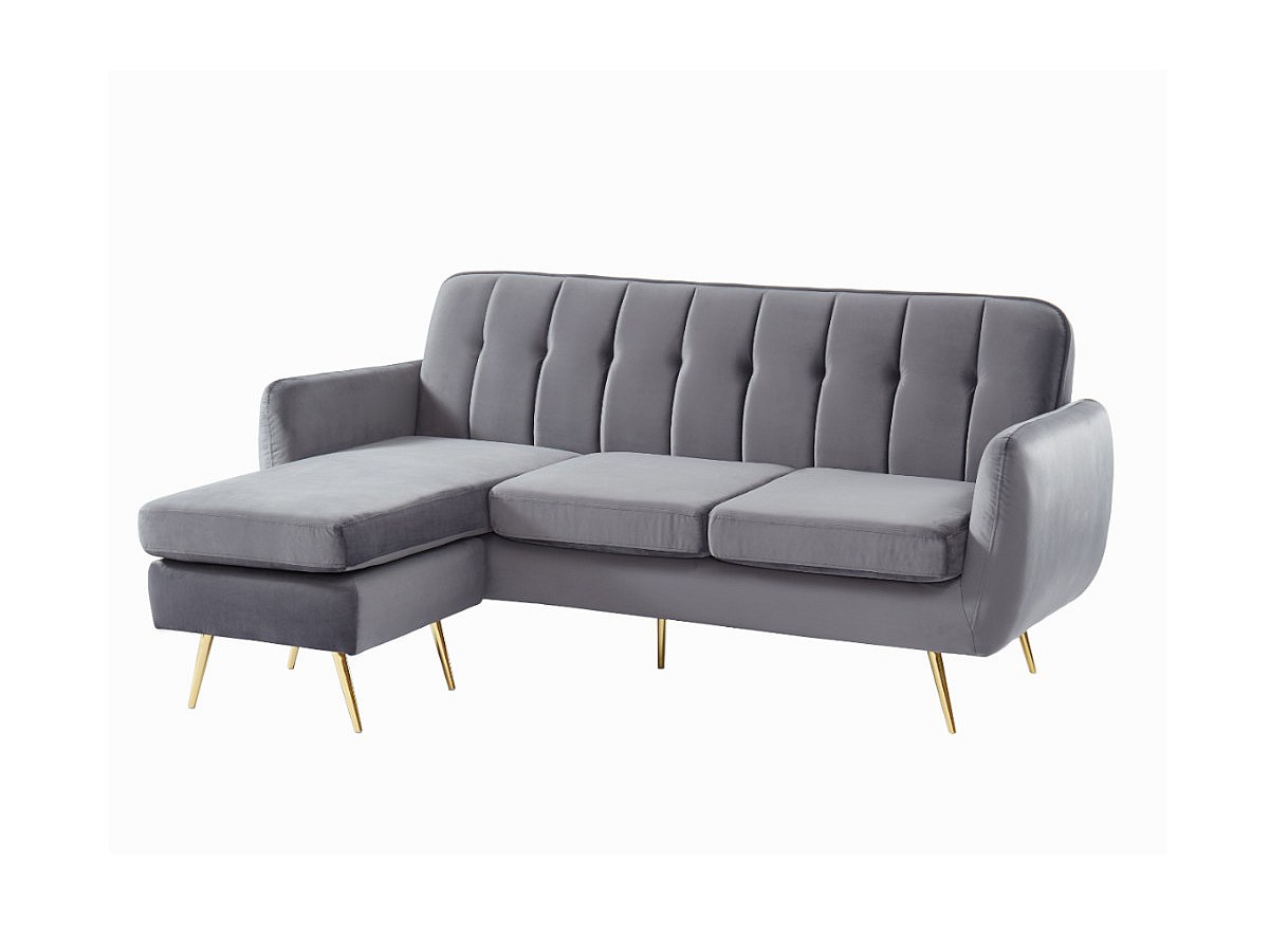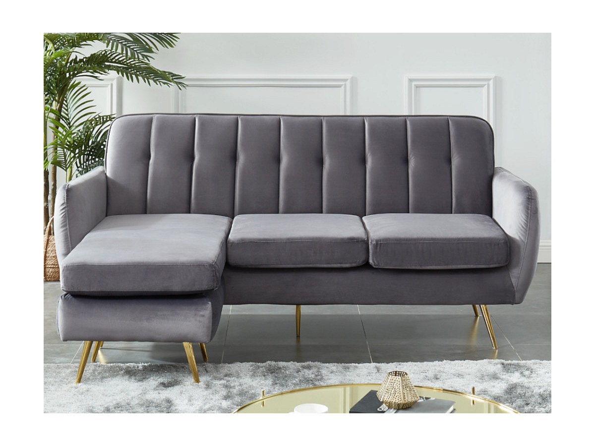 Omkeerbare modulaire hoekbank van fluweel BLAYNE - Lichtgrijs