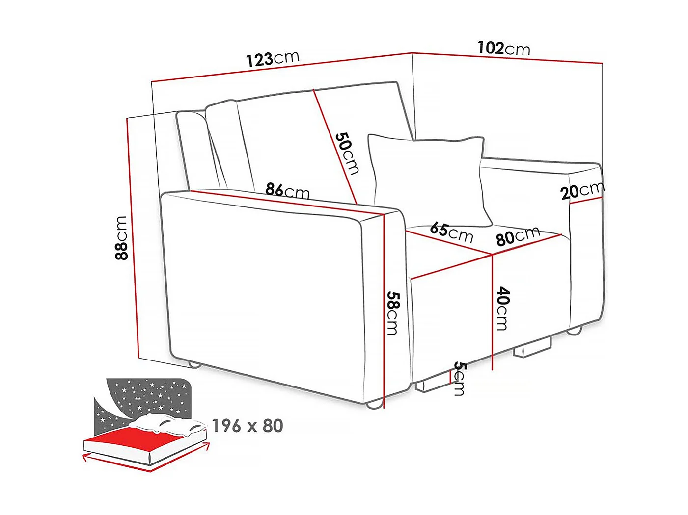 Clivia" corduroy converteerbare fauteuil - Grijs