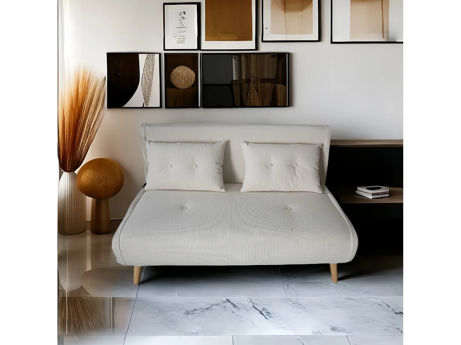 Omvormbare Fluwelen Ribbank Beige 2-Zits ENNIS