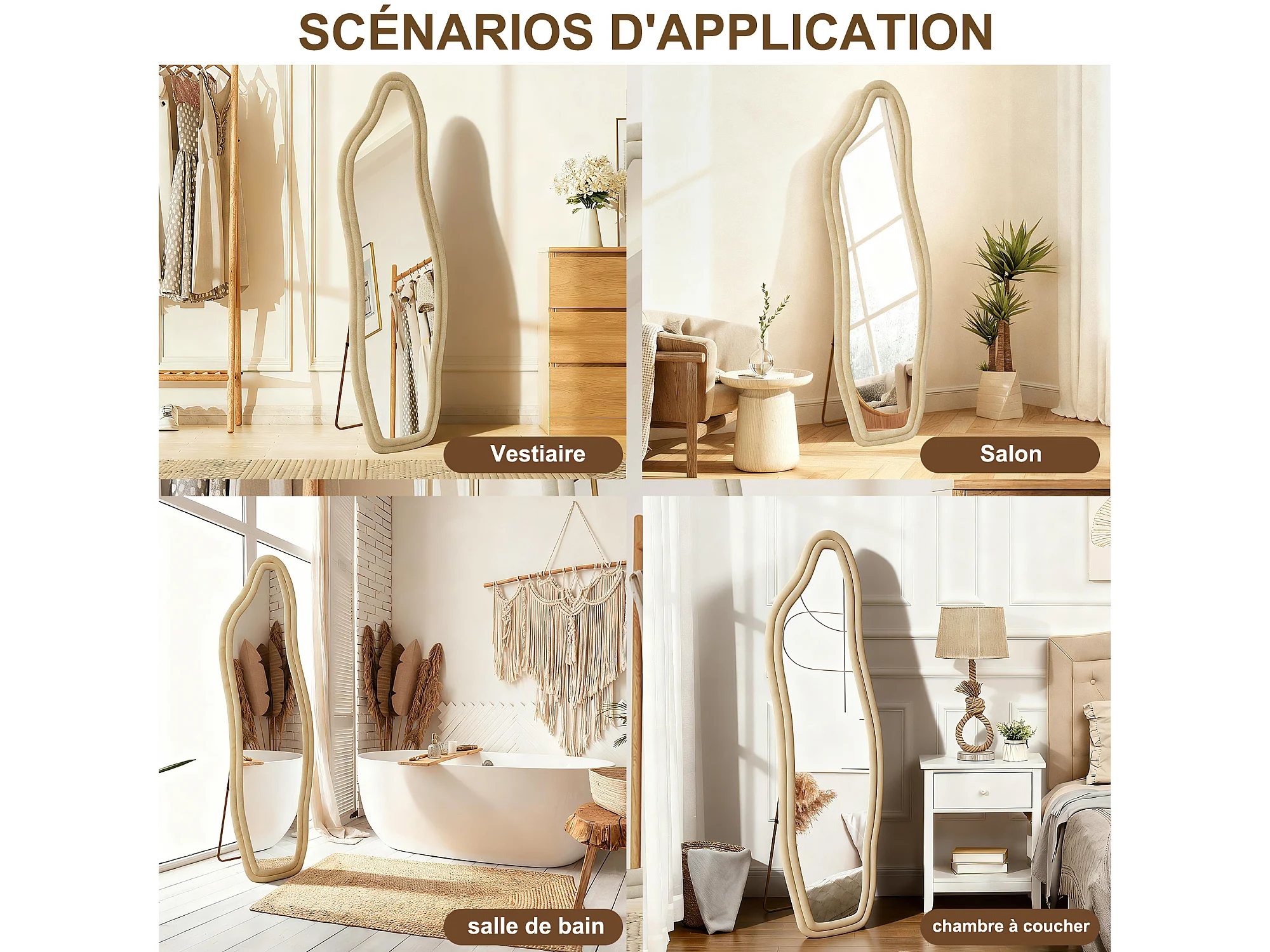 Onregelmatige spiegel 160×50 cm met gouden fluwelen lijst – Modern design, HD gehard glas