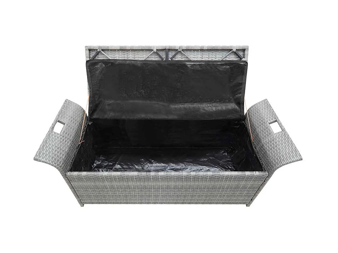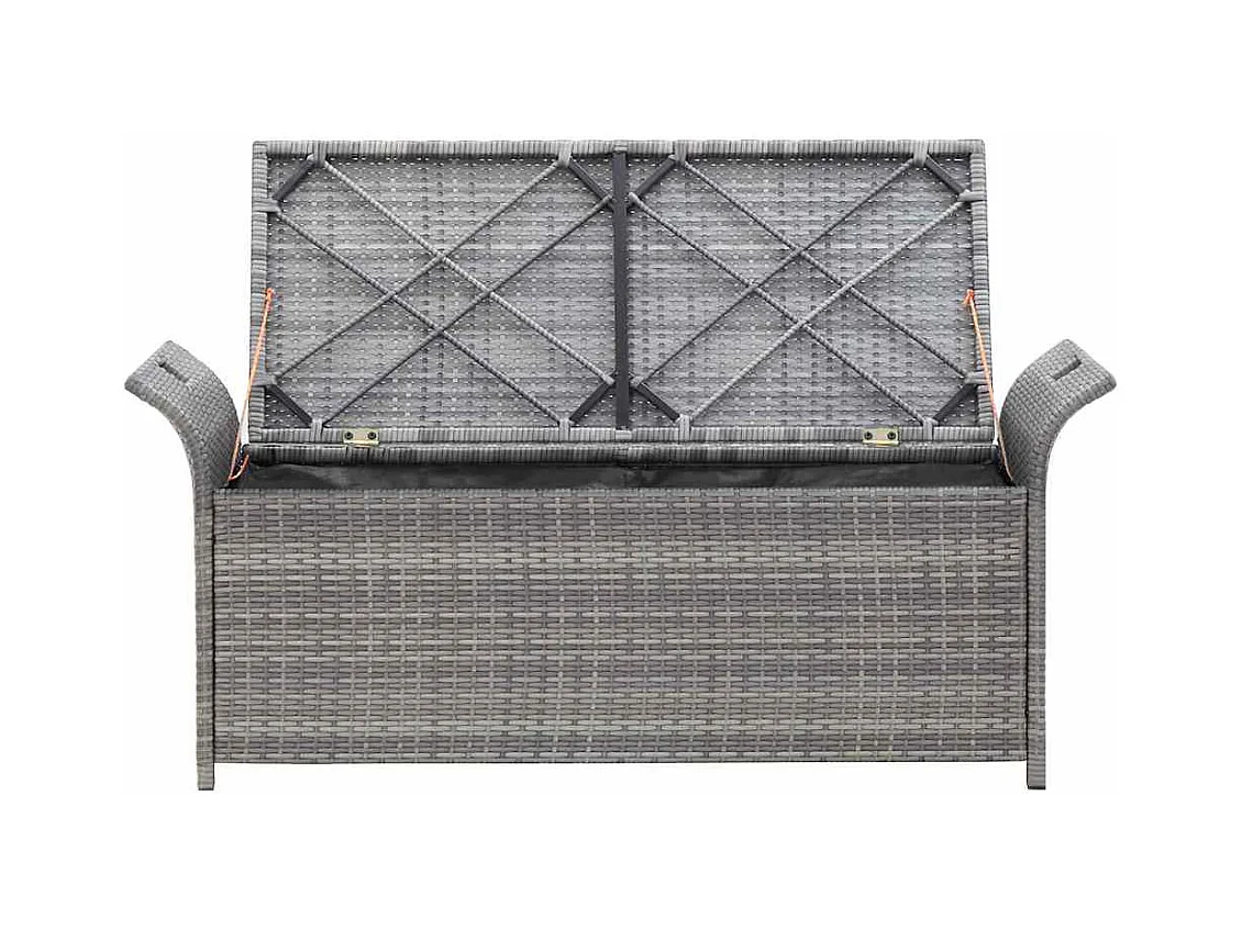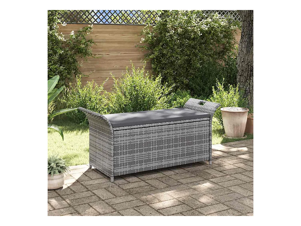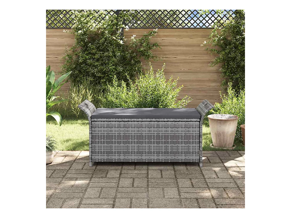 Tuinbank met grijs kussen 110x30x40,5 cm gevlochten hars