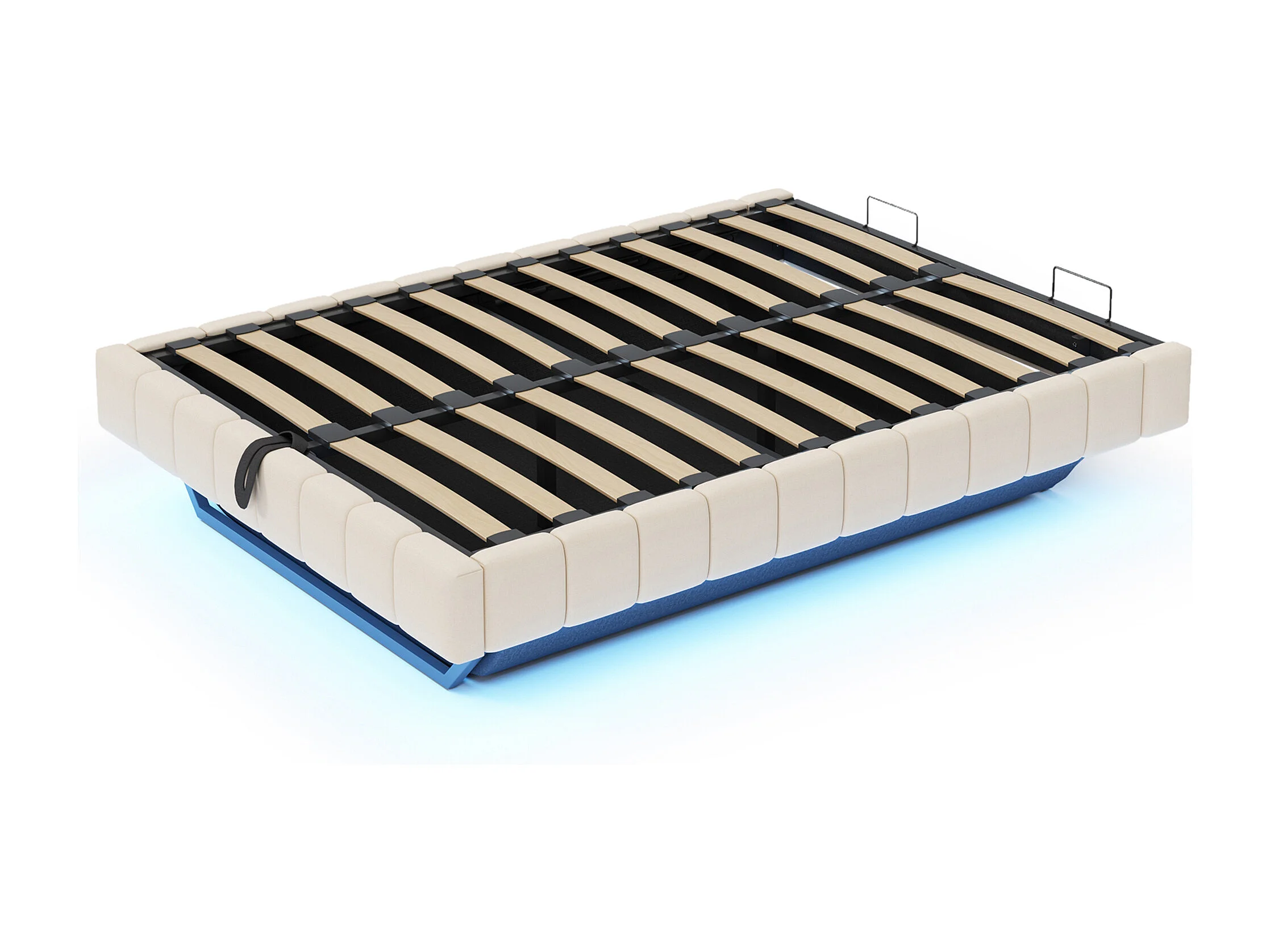 Opbergbed 140x200 cm - Volwassen bed met LED-verlichting - zonder hoofdbord - beige linnen - zonder matras
