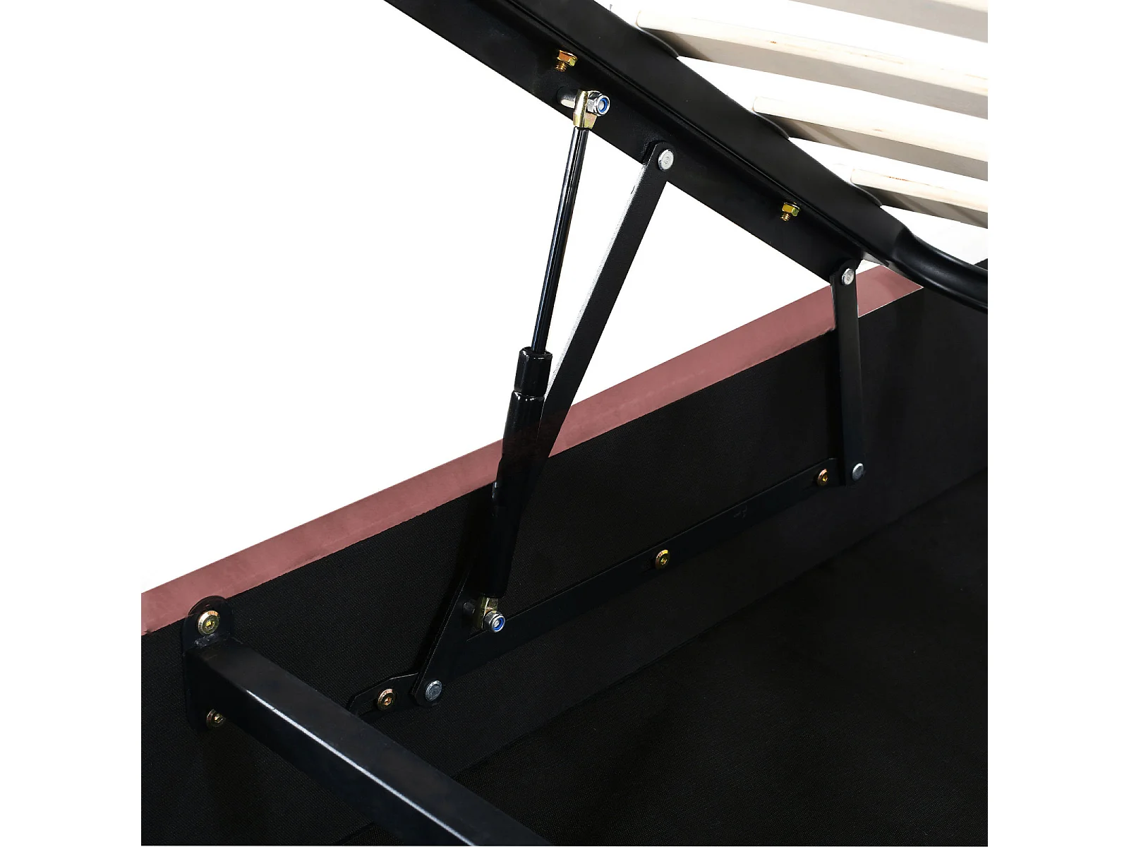 Opbergbed 140x200cm, met lattenbodem en bloemenhoofdbord, in hoogte verstelbaar, fluwelen stof, bonenrood