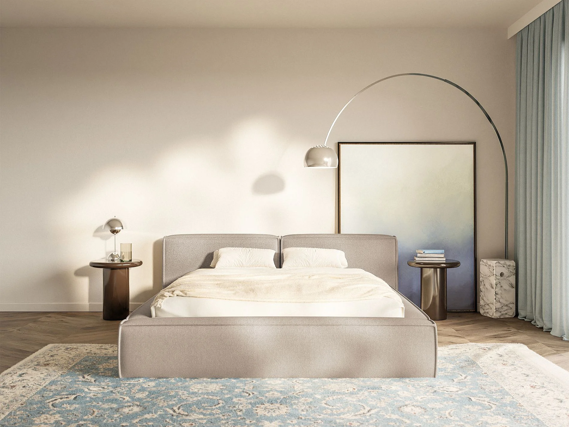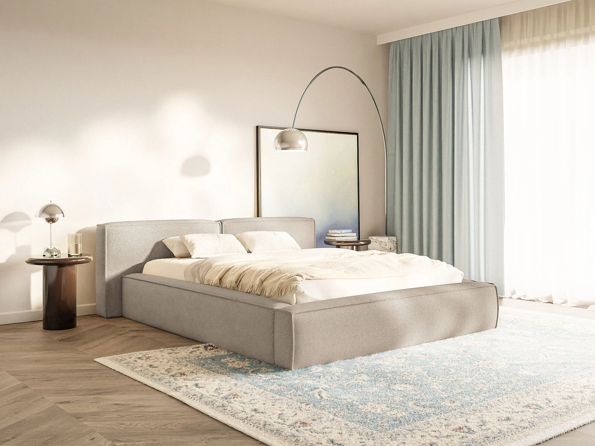 Tweepersoonsbed gestoffeerd - 160x200 cm - in lichtbeige bouclette - CANDE