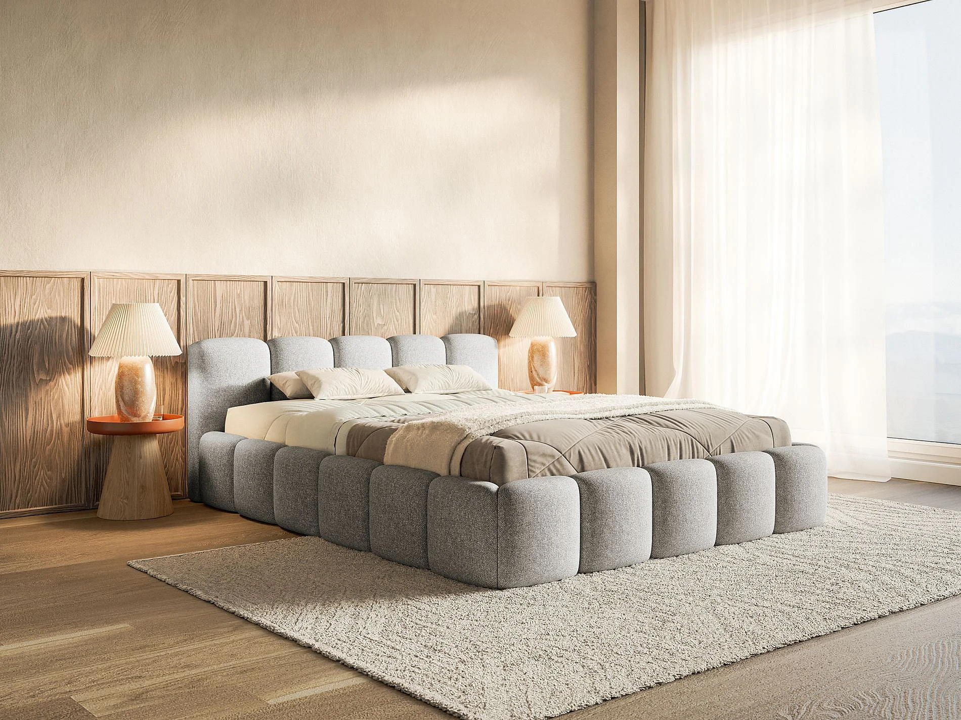Gestoffeerd bed – 160x200 cm – in lichtgrijze chenillestof – UMIKE