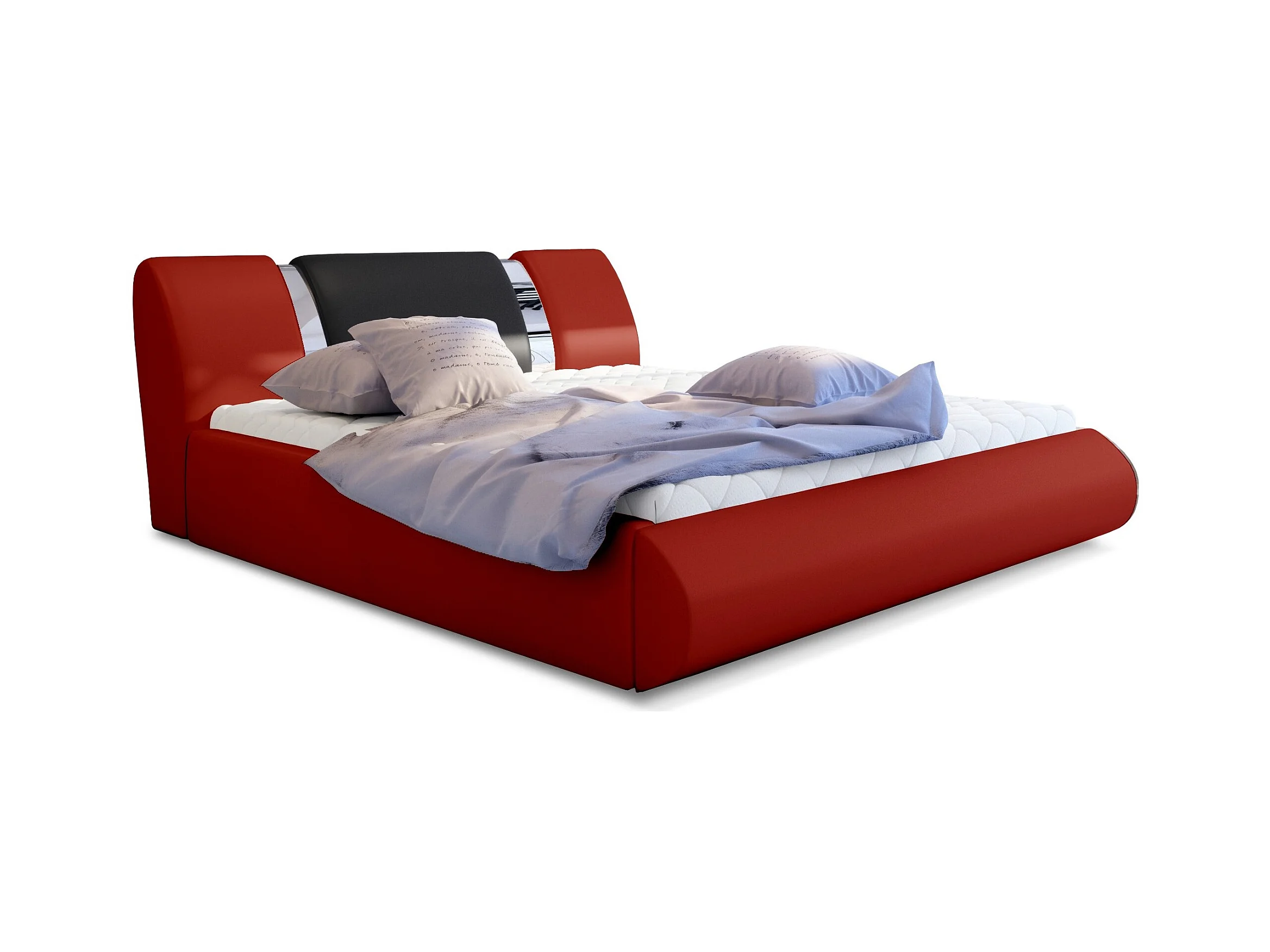Opbergbed 180x200 cm rood/zwart imitatie en chroom metaal Flavien
