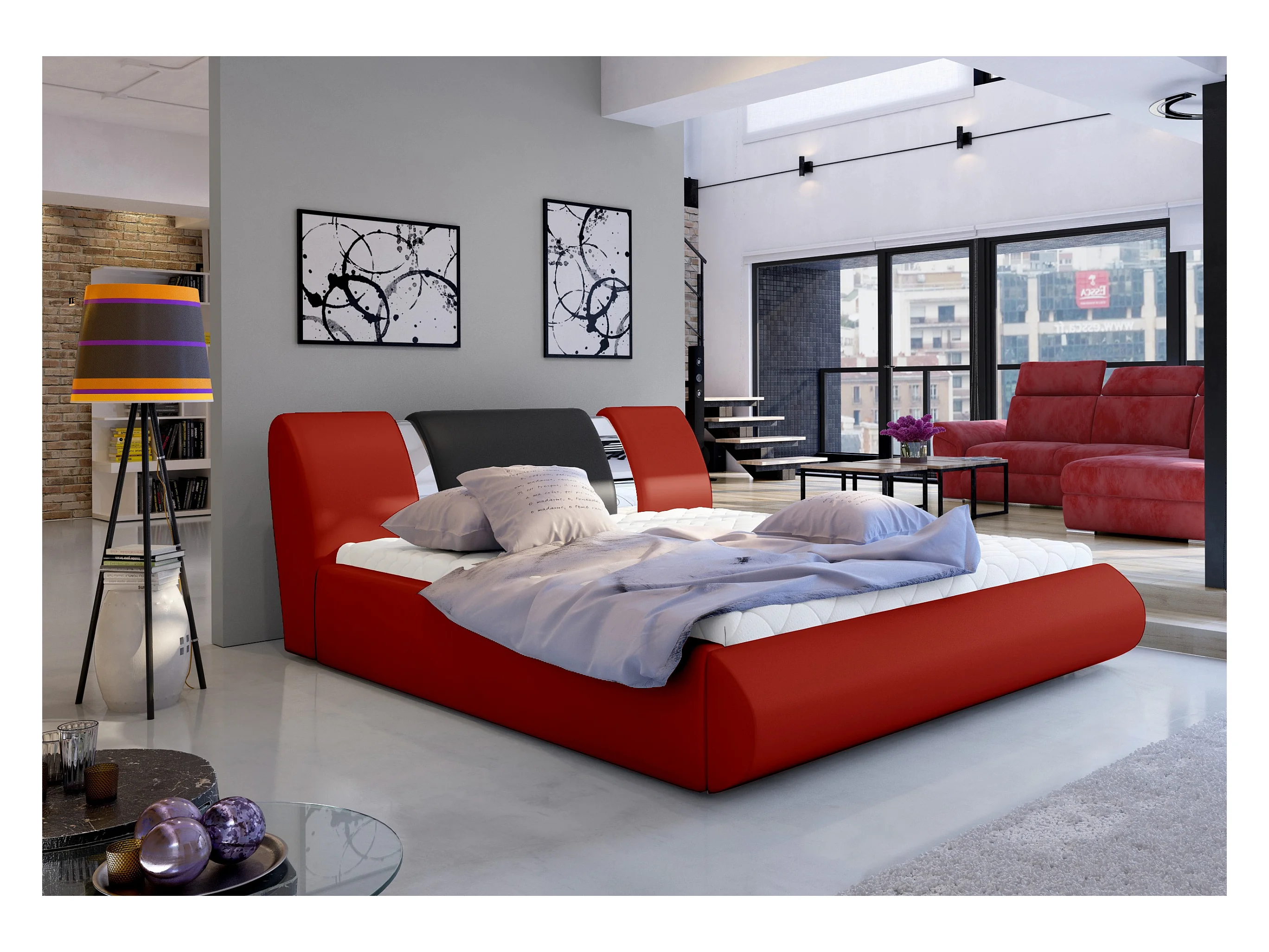 Tweepersoonsbed bekleed met Clarin-stof-Kleur Tomette rood-Slapen 180x200cm-Versie met boxspring