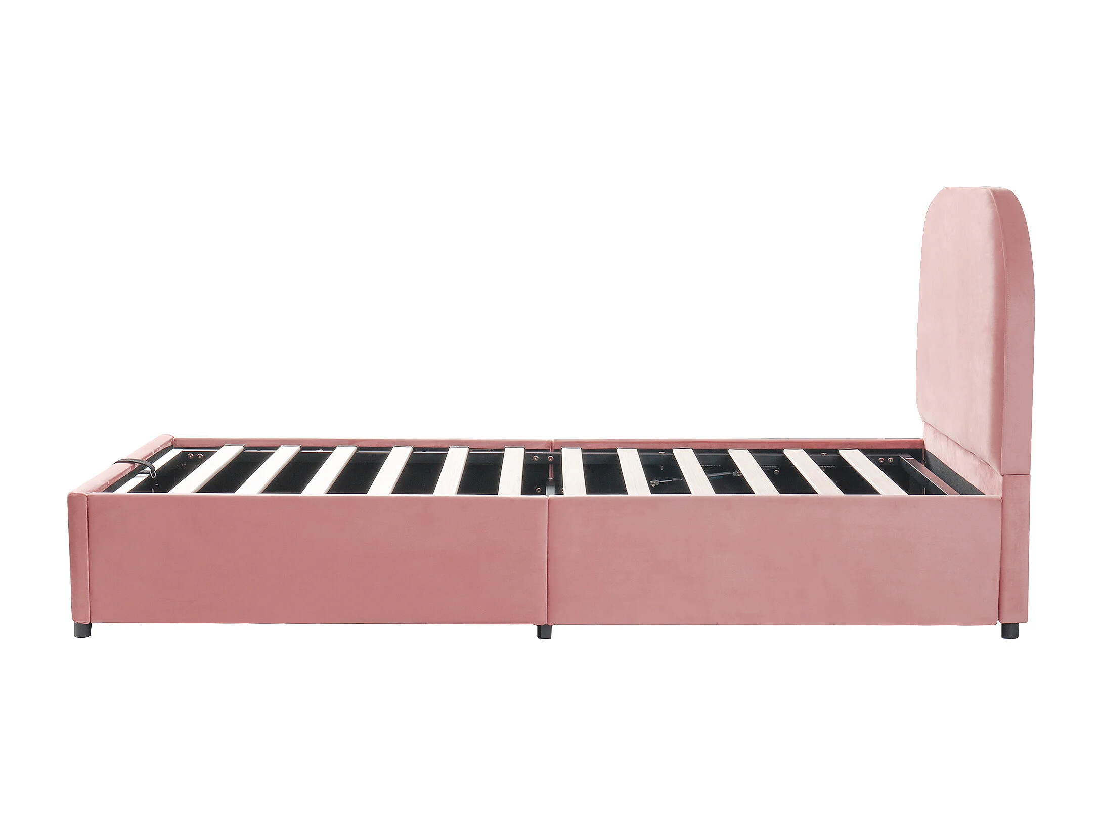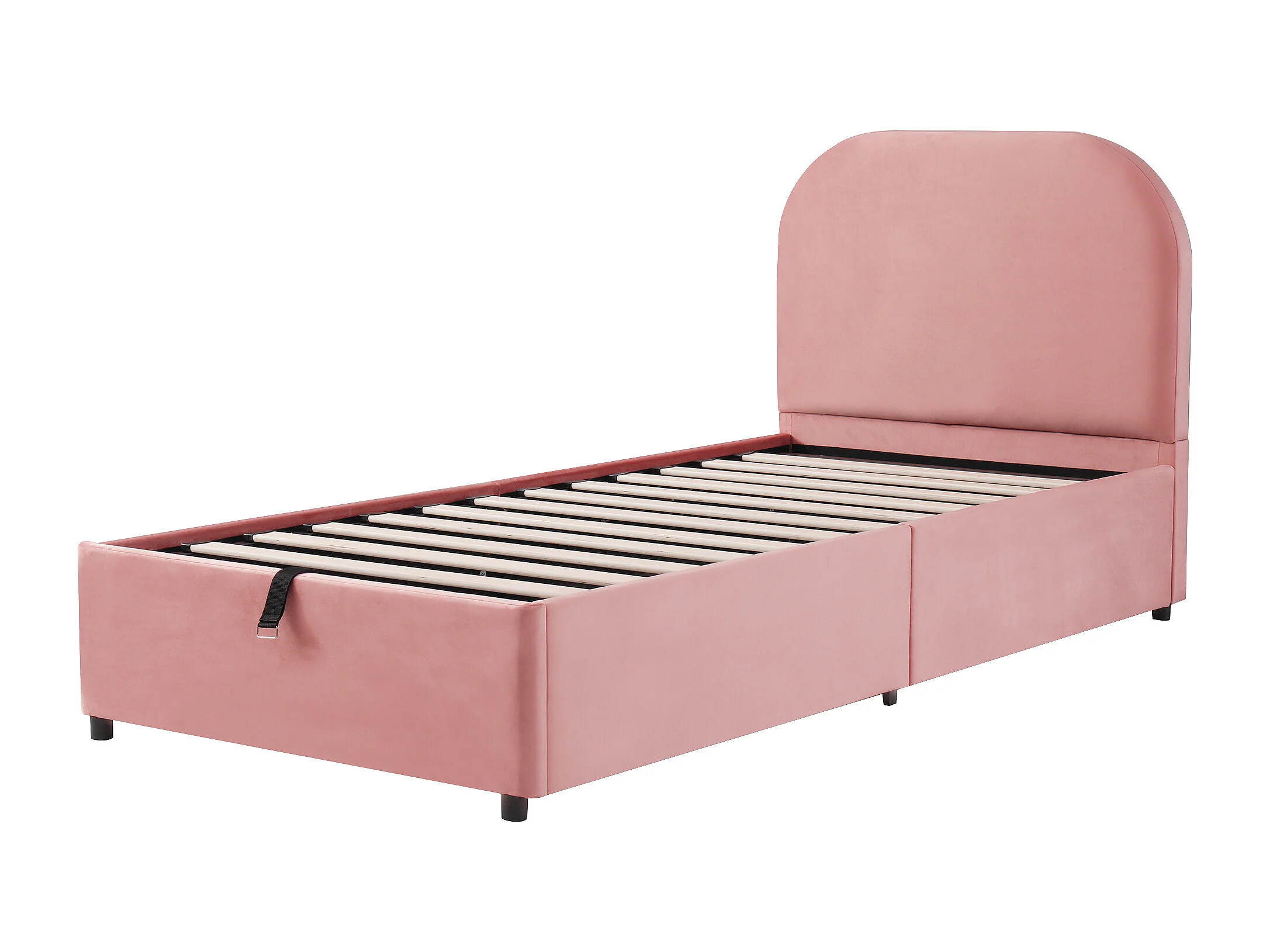 Opbergbed 90 x 200 cm - kinderbed met afgerond hoofdeinde - roze fluweel
