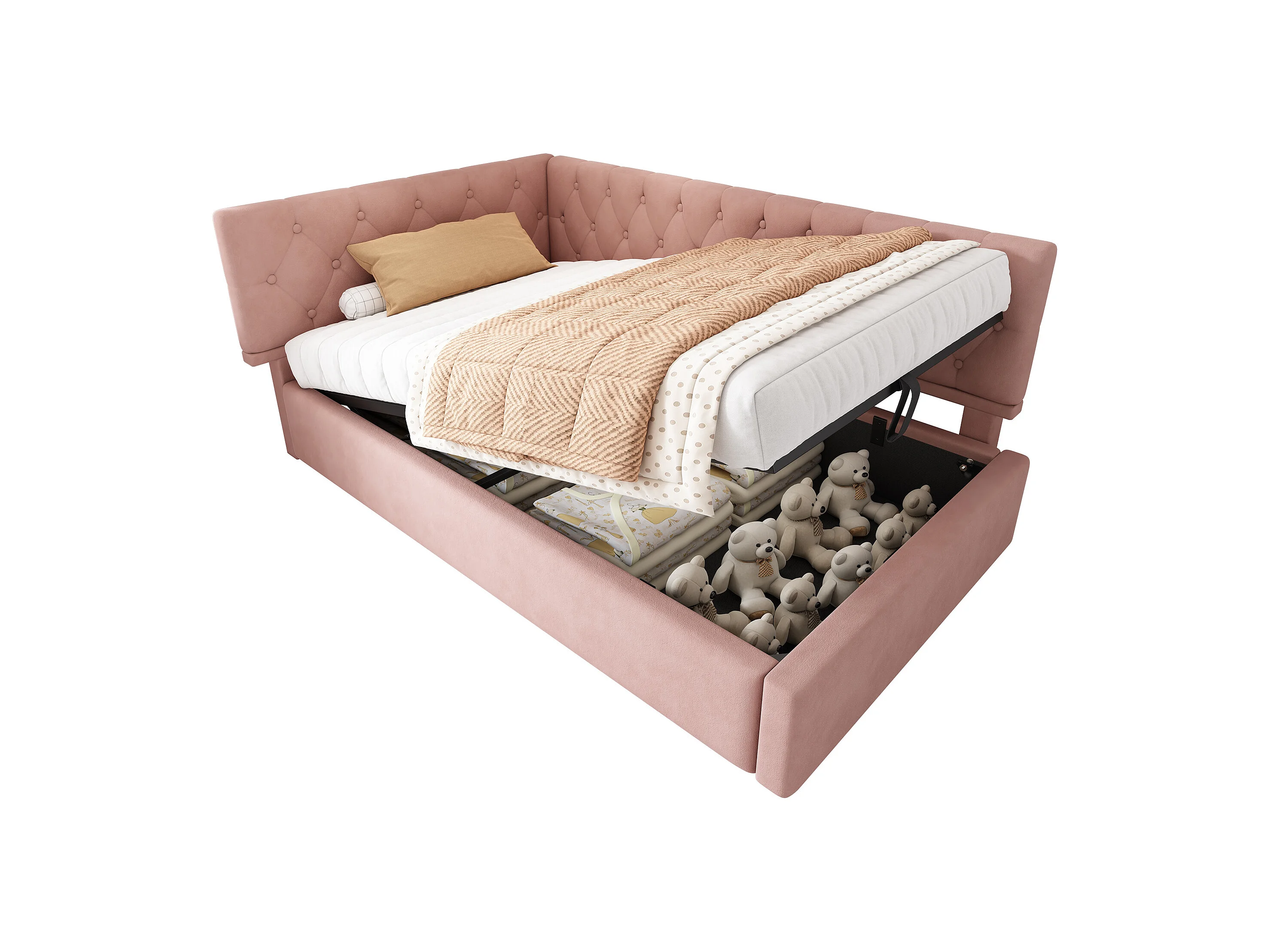 Opbergbed 90x200 cm - Kinderbed met rugleuning en houten lattenbodem - roze fluweel - zonder matras