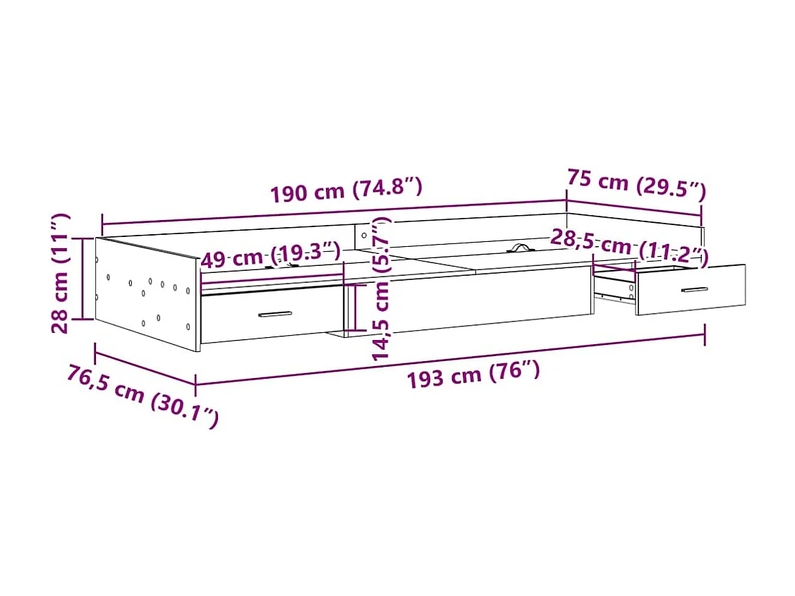 Dagbed met lades zonder matras betongrijs 75x190 cm
