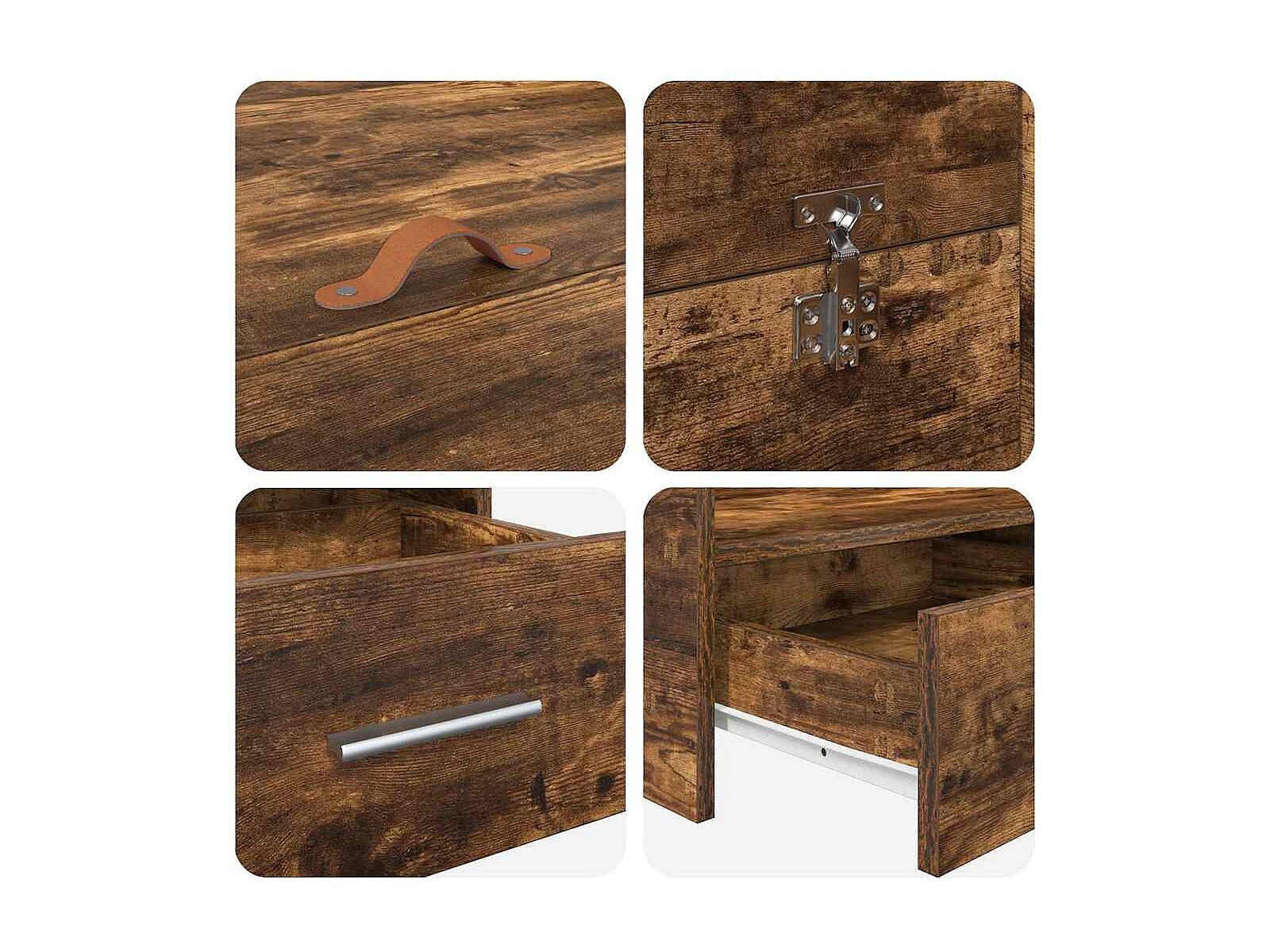 Opbergbedframe met lade Gerookt eiken 135 x 190 cm Bewerkt hout