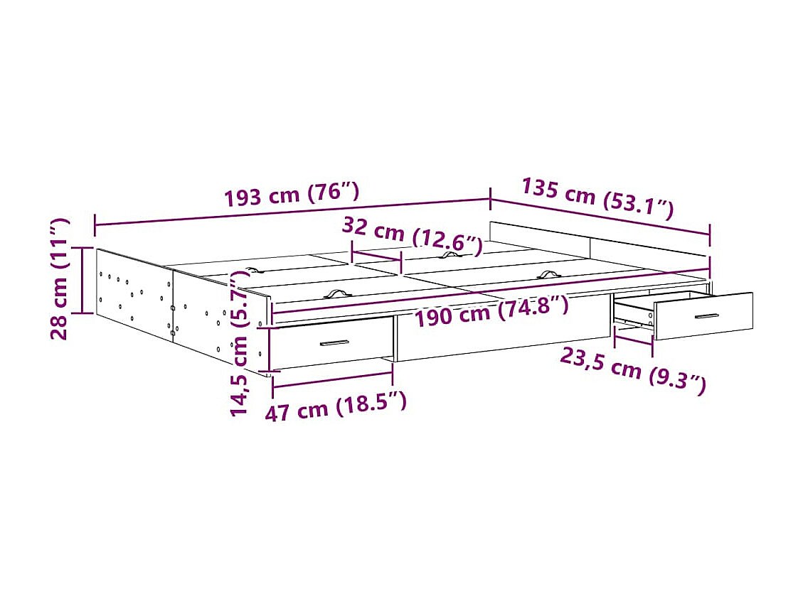Bedframe zonder matras bewerkt hout sonoma eikenkleur 135x190cm