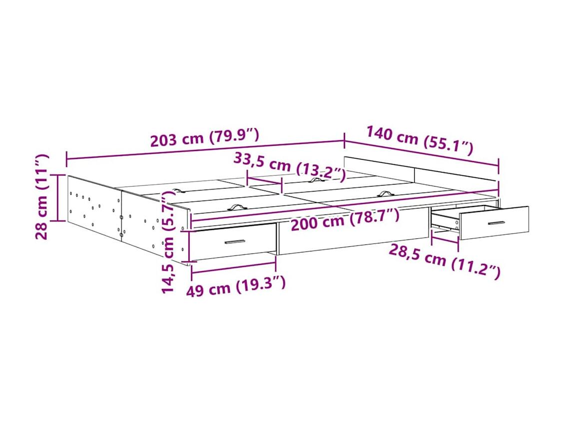 Opbergbedframe met lade Grijs sonoma 140 x 200 cm Bewerkt hout