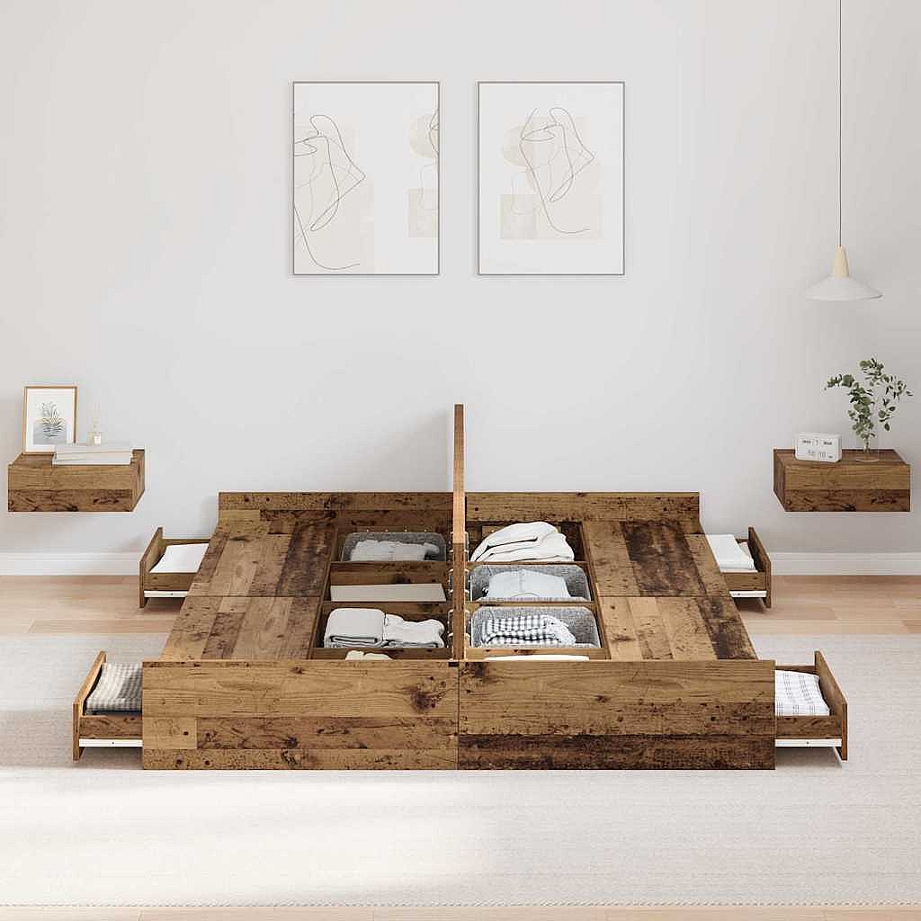 Opbergbedframe met lade Oud hout 140 x 200 cm Bewerkt hout