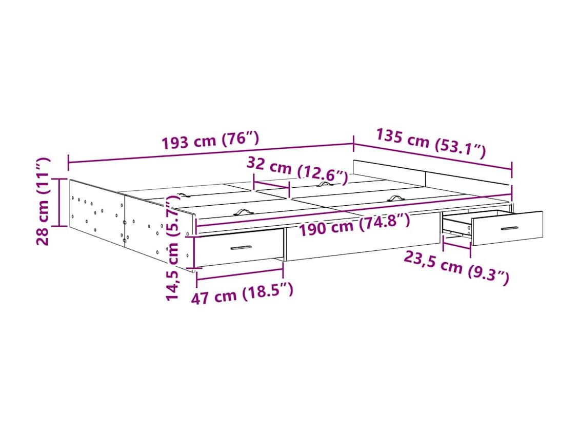 Opbergbedframe met lade Sonoma eiken 135 x 190 cm Bewerkt hout