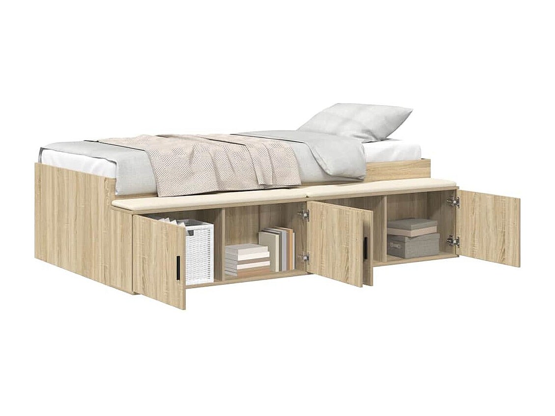 Opbergbedframe met opslag Sonoma eiken 90 x 200 cm Bewerkt hout