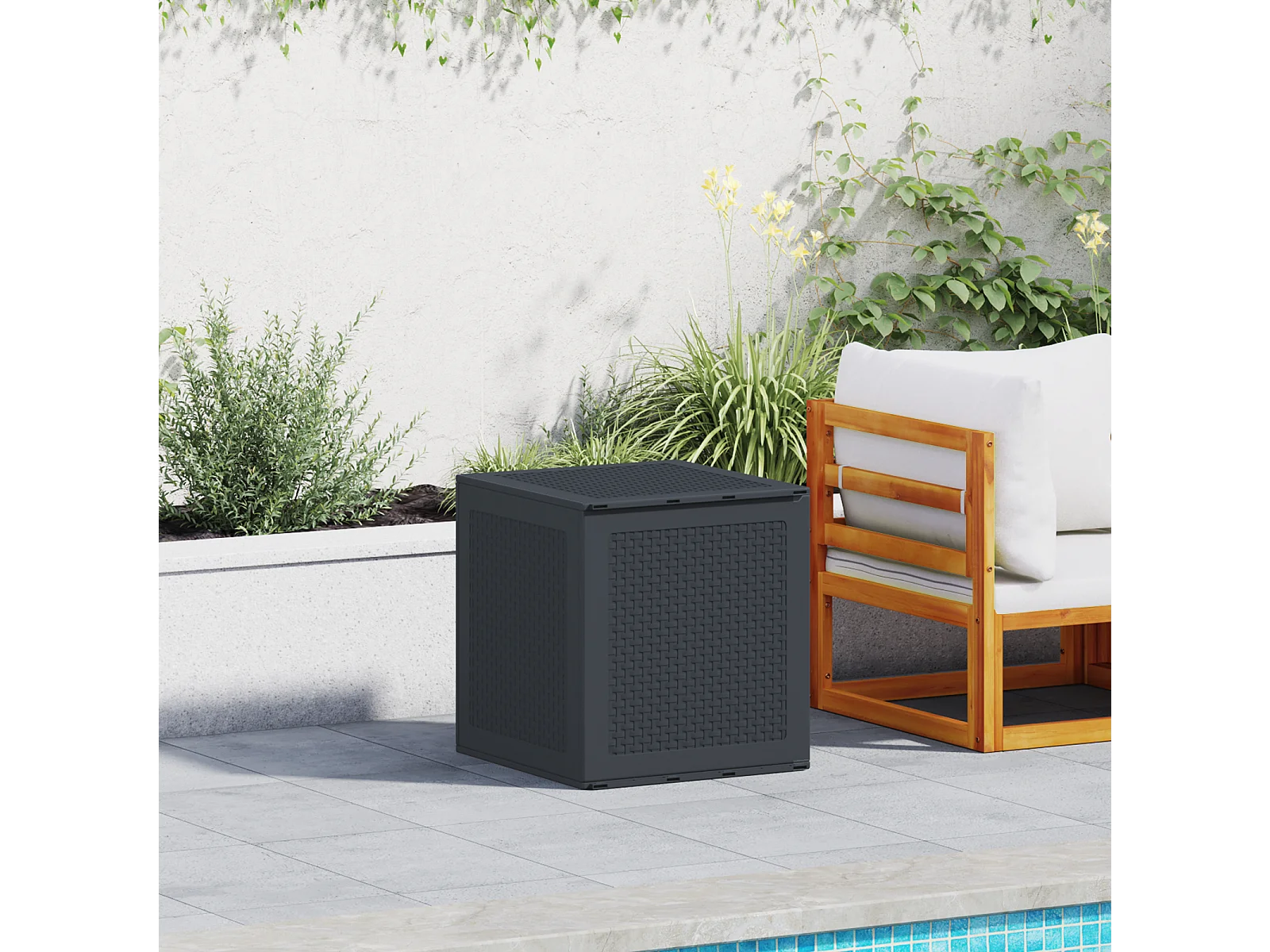 Grote grijze en donkergrijze rotan opbergbox voor buiten