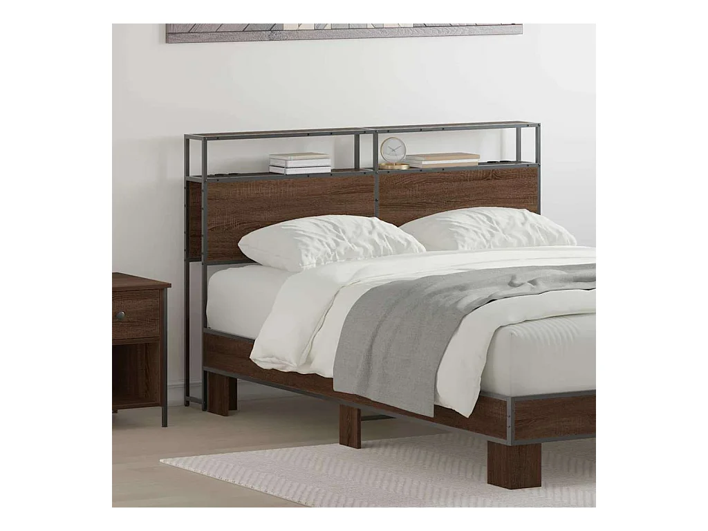 Opberghoofdbord met plank bruin eikenkleur 135 cm Bewerkt hout