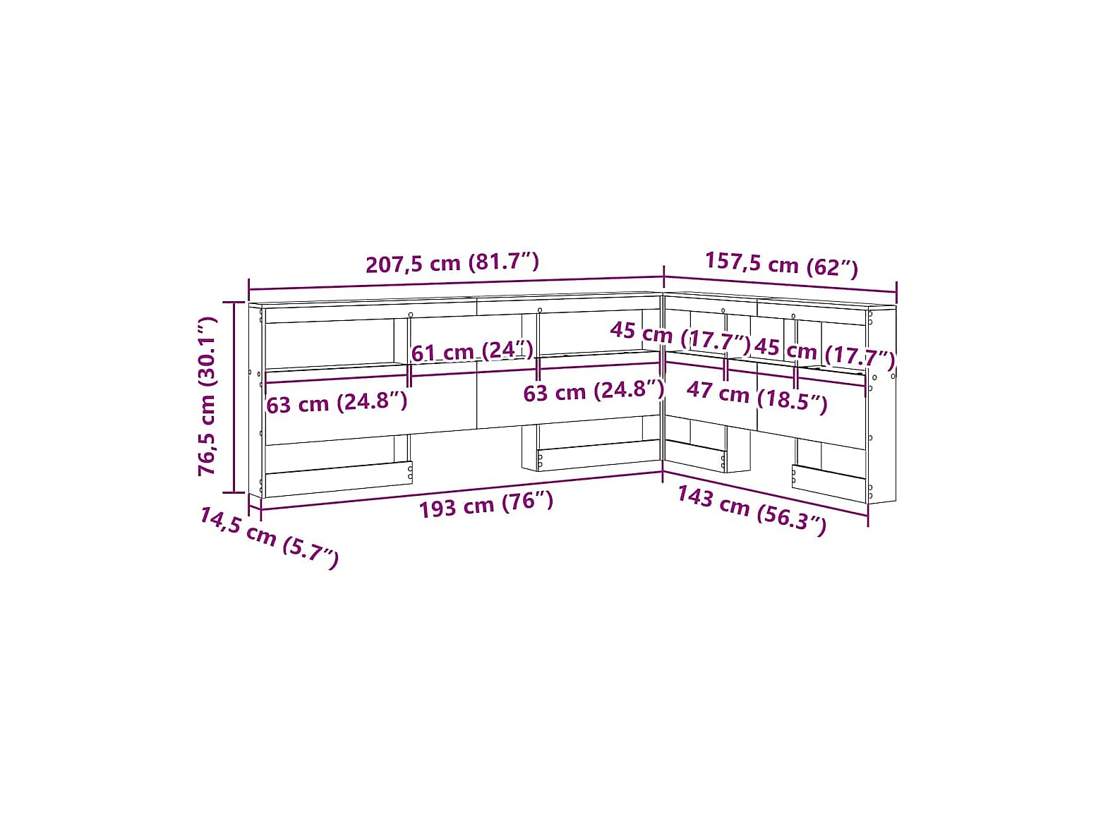 Wit 80 cm opberghoofdeinde van bewerkt hout