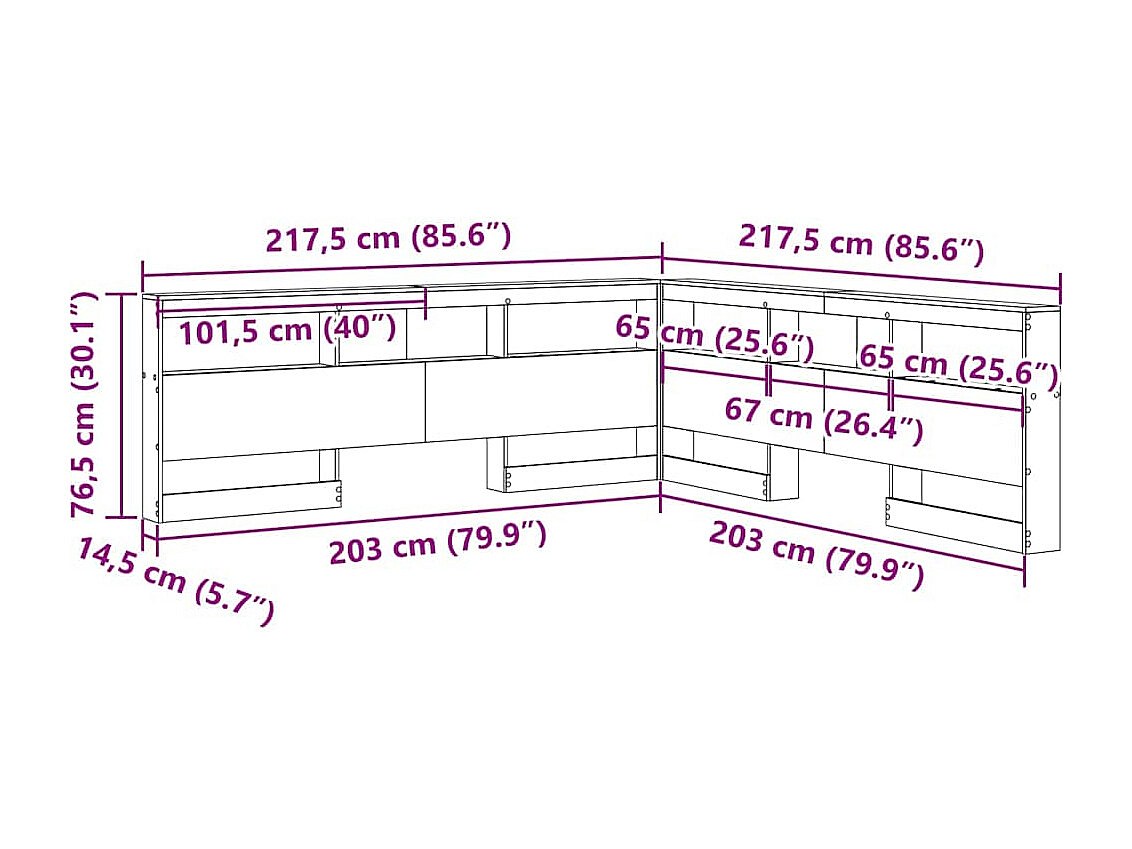 Opberghoofdbord met plank Gerookt eiken 200 cm Bewerkt hout