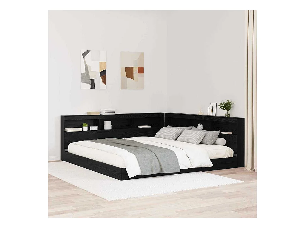 Opberghoofdbord met plank Zwart eiken 200 cm Bewerkt hout