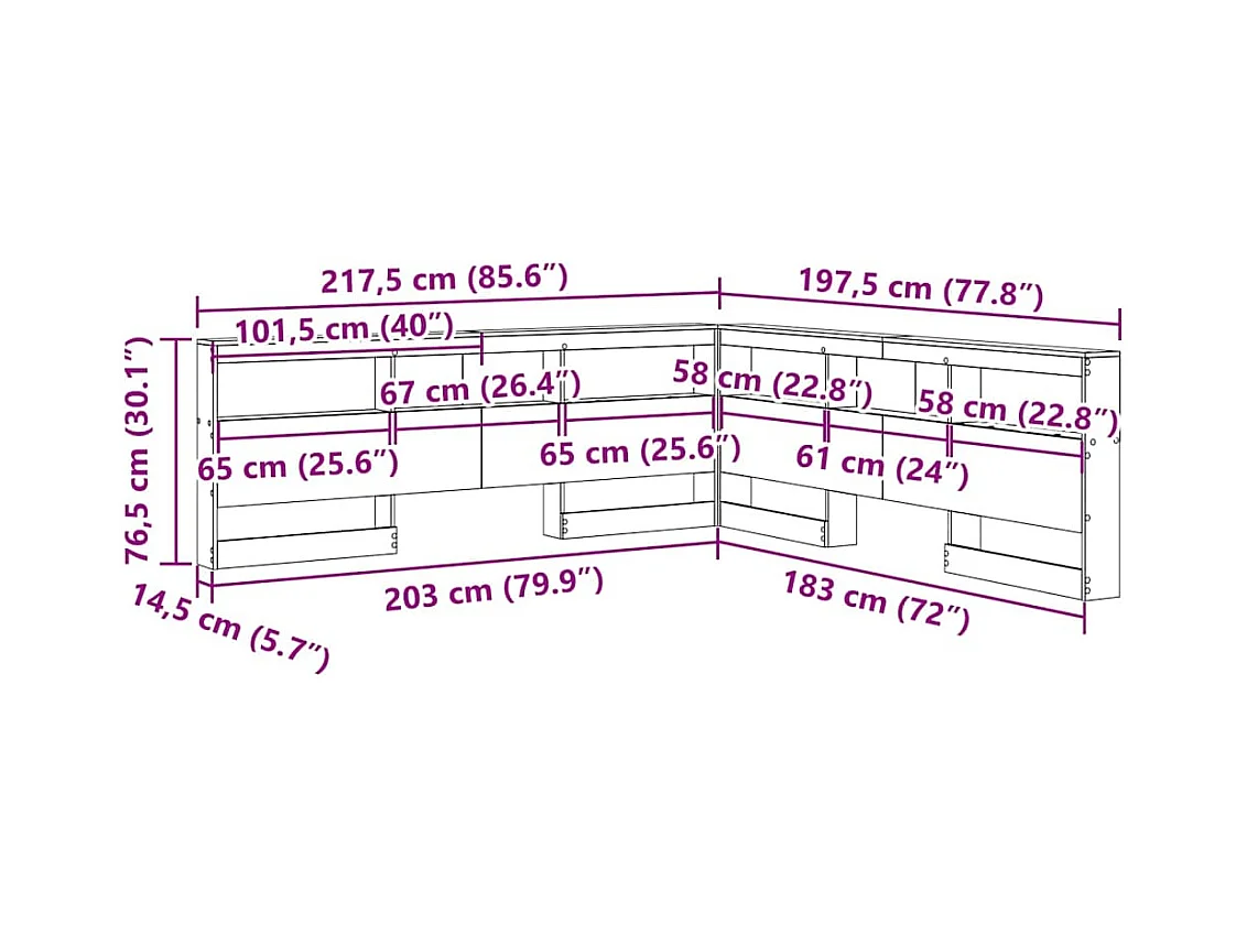Opberghoofdbord met plank Sonoma eiken 180 cm Bewerkt hout