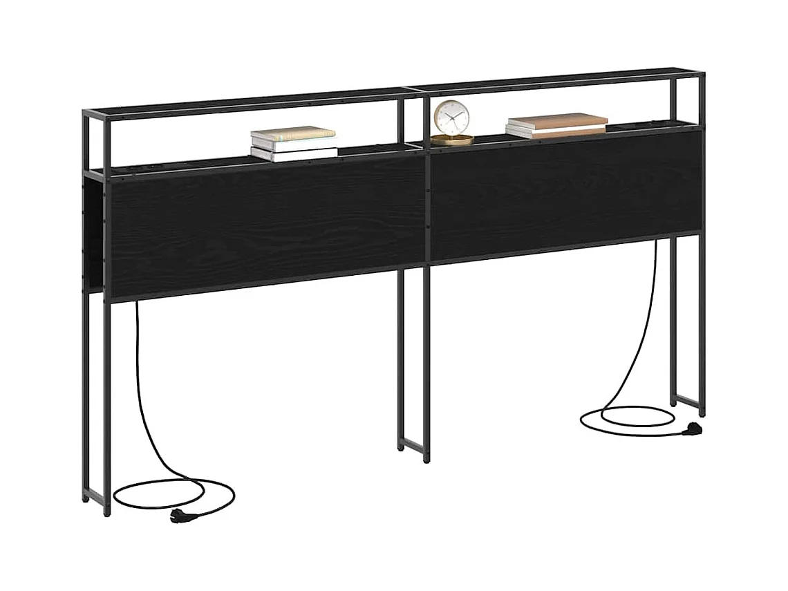 Opslage hoofdbord met oplaadstation Zwart eiken 200 cm