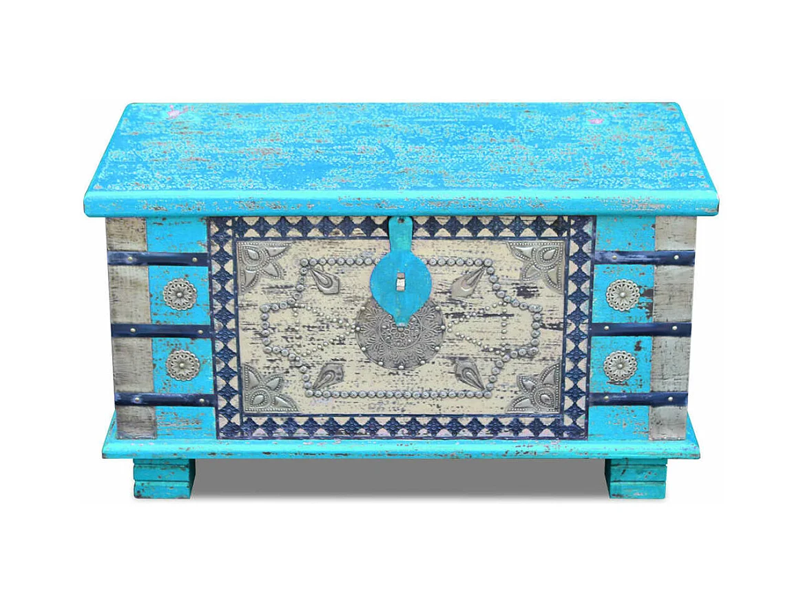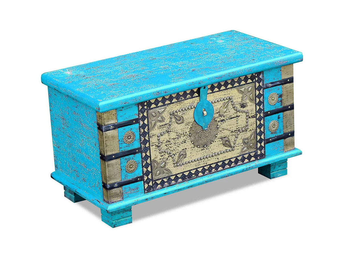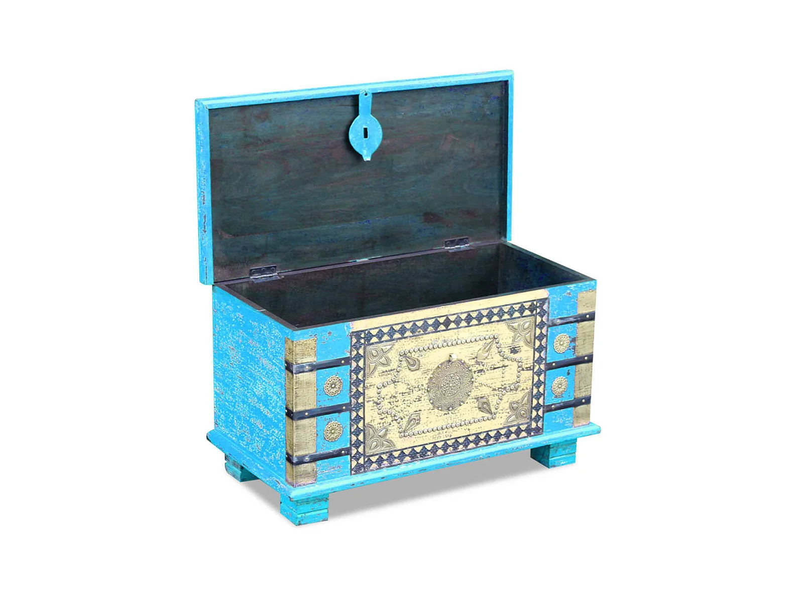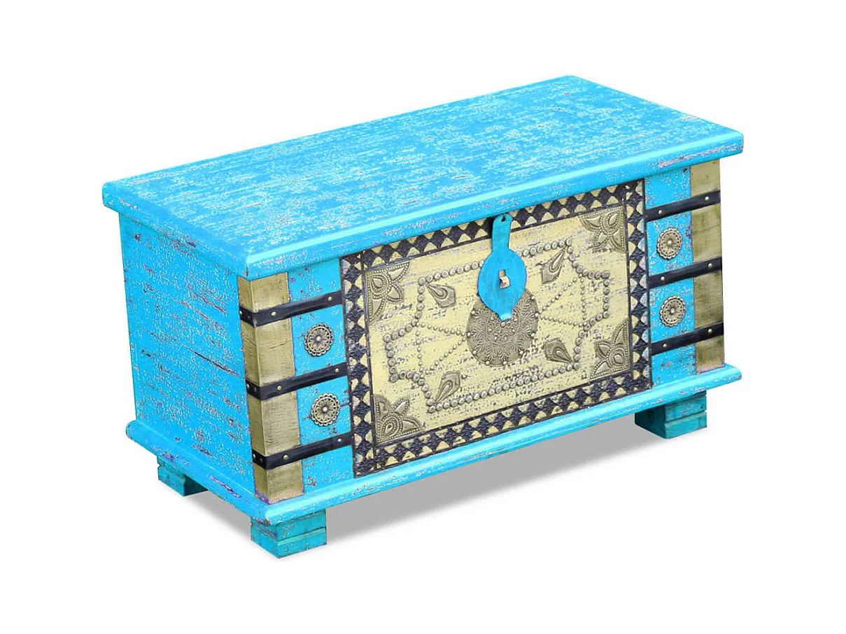Opbergkist Blauw mangohout 80 x 40 x 45 cm
