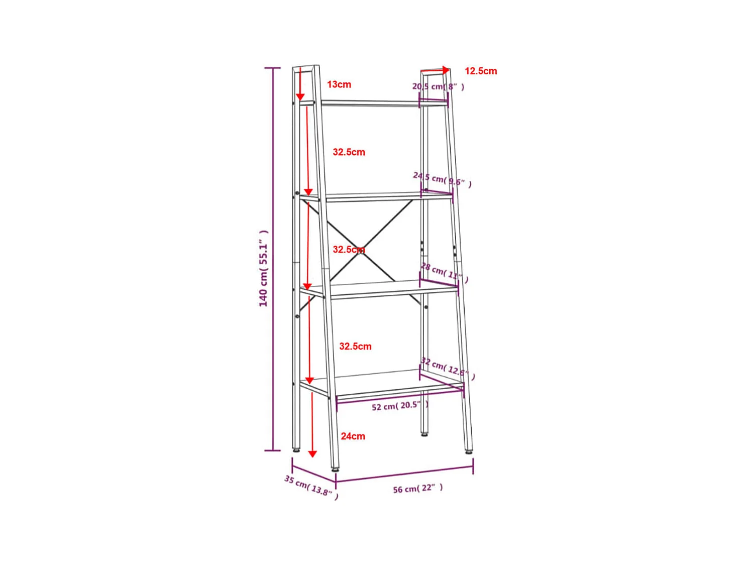 Opbergmeubel met 4 schappen 56x35x140 cm zwart