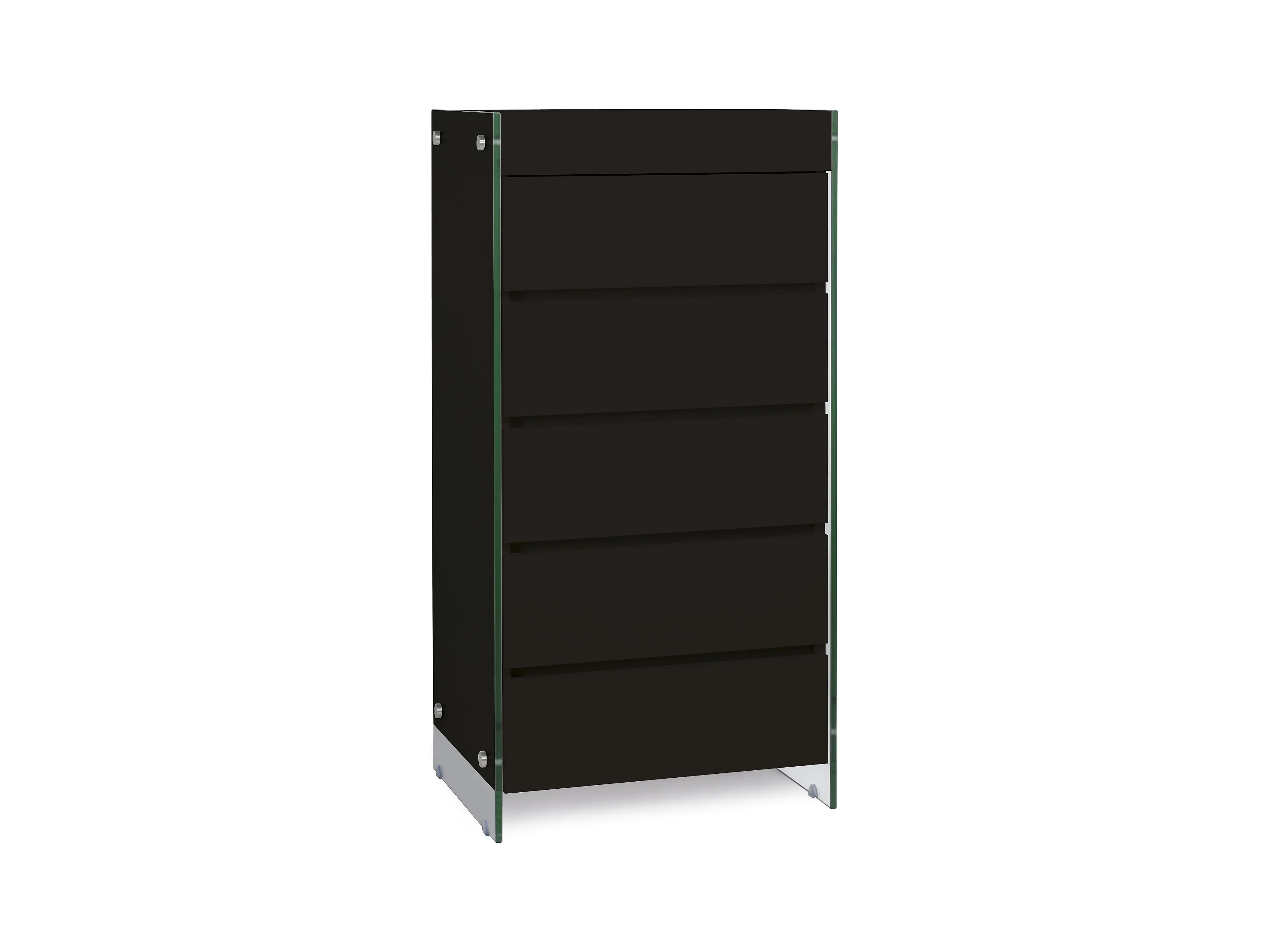Opbergmeubel met 5 zwart gelakte houten lades en Dyn poten van gehard glas
