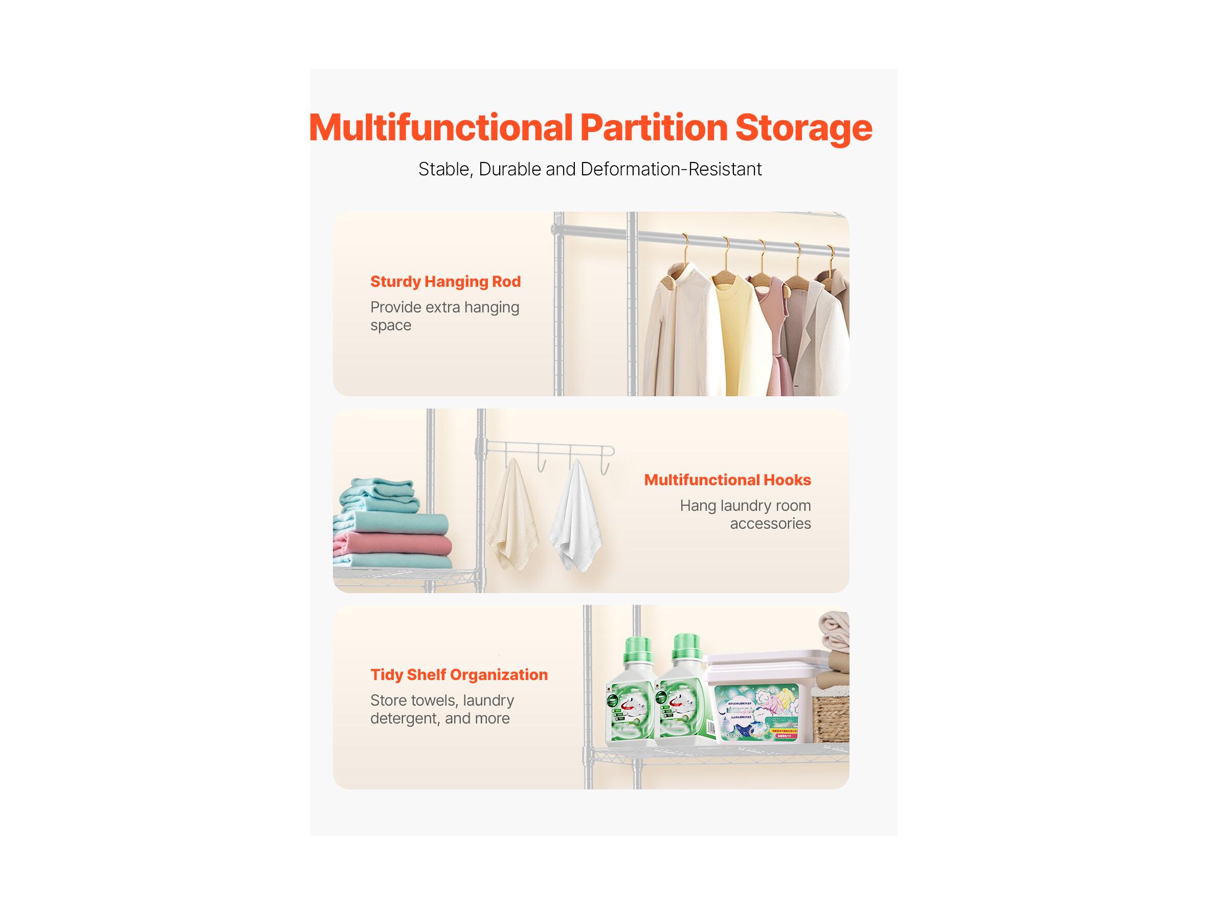 Opbergrek SucceBuy, voor Wasmachine en Droger, met 5 Niveaus, Wit, voor Wasmachines en Drogers