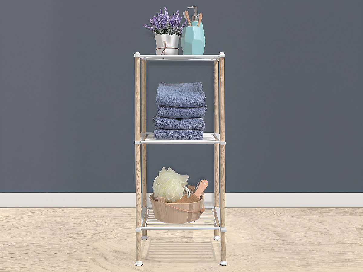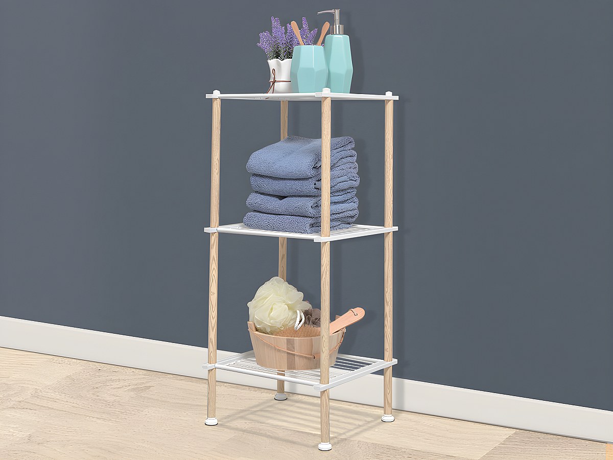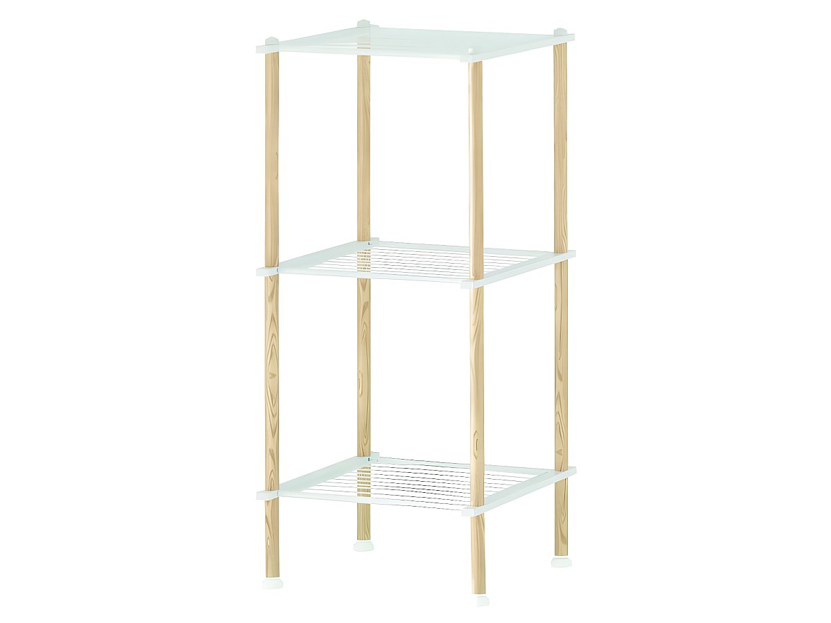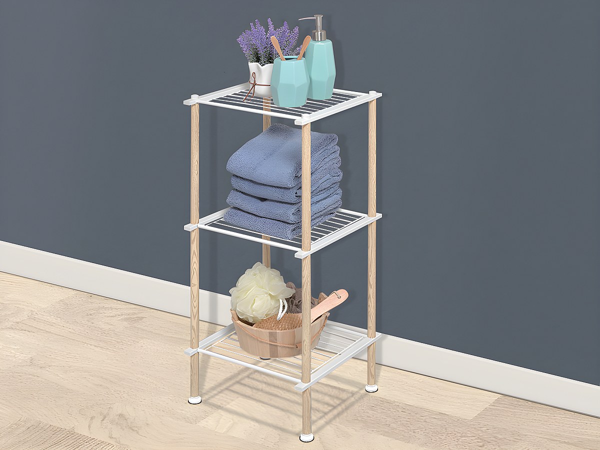 Opbergrekje op voet 3 niveaus SAMARIA - IJzer - Wit en houteffect